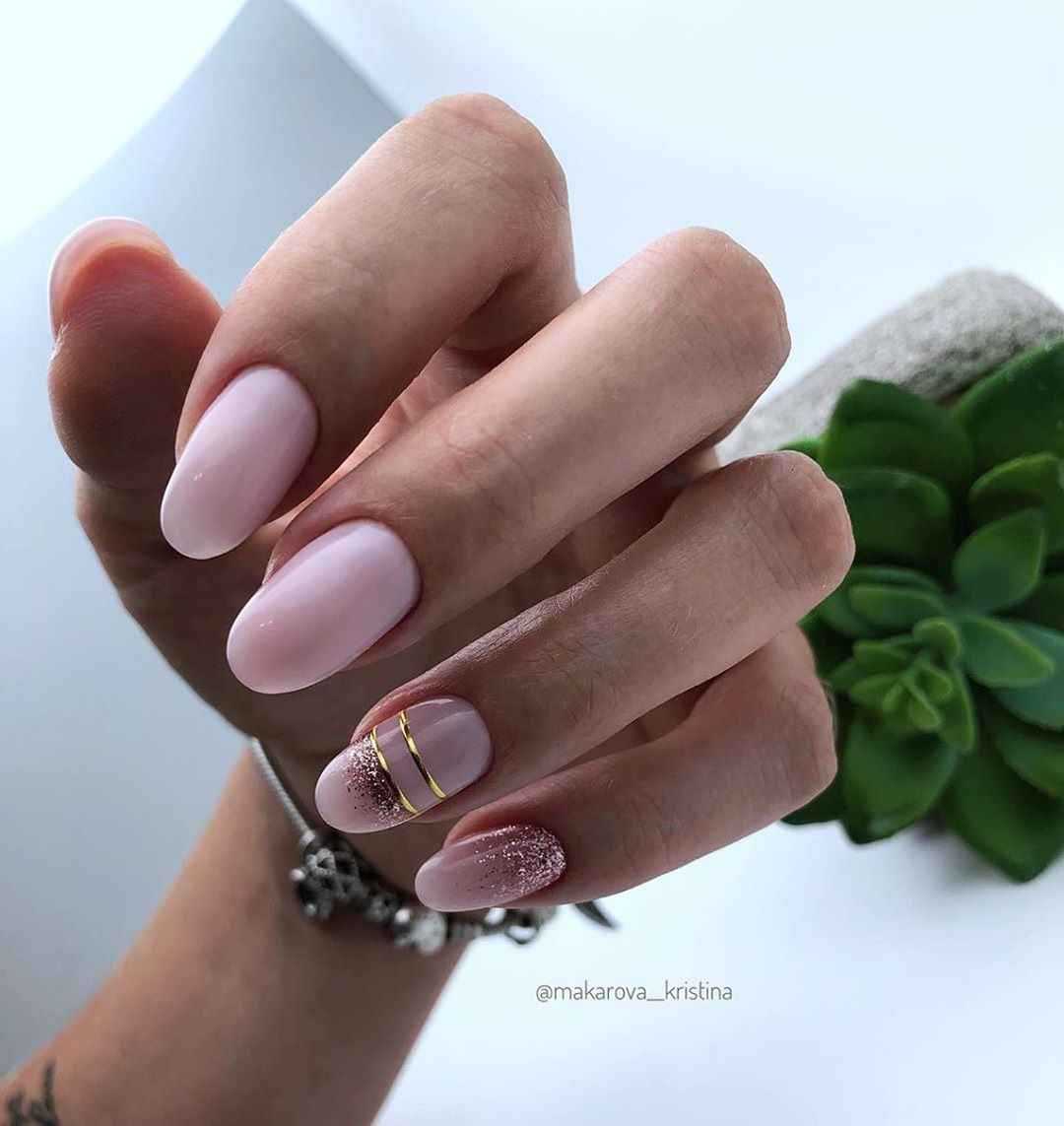 Не менее популярны ногти с золотой и серебряной фольгой. На бледно-розовой основе такой дизайн выглядит особенно привлекательно и очень женственно.