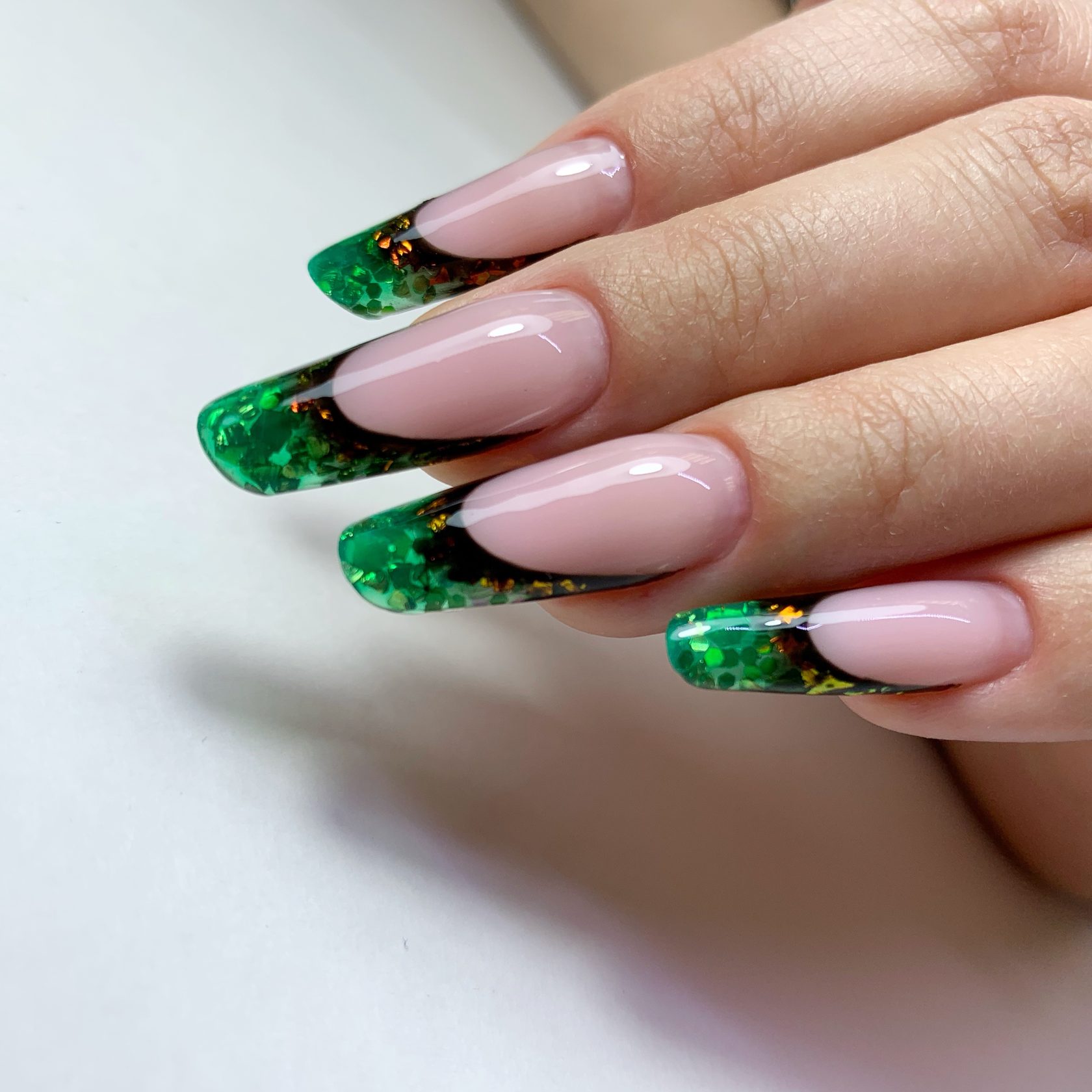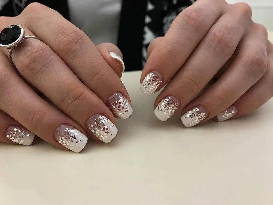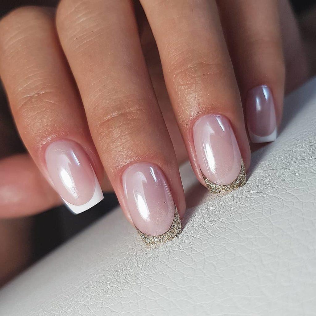 - Френч с градиентом блесток: Создайте плавный переход от блестящего кончика ногтя к нейтральной основе, чтобы добавить глубину вашему маникюру.