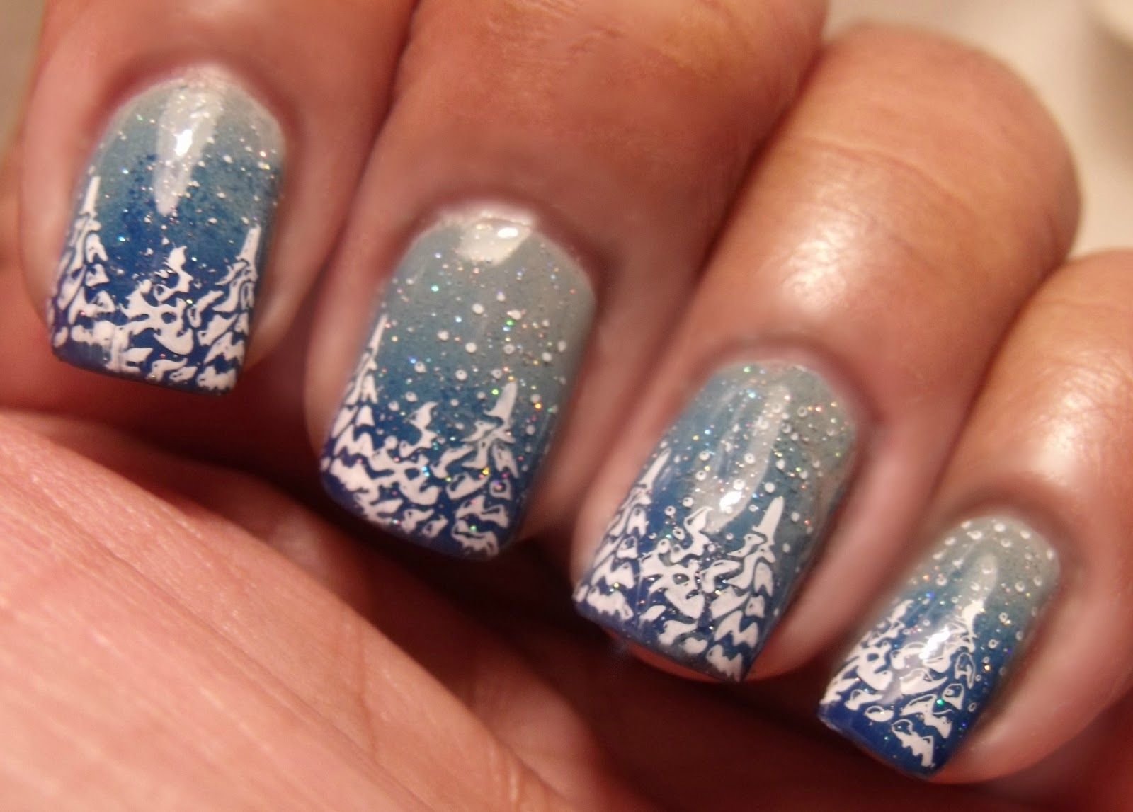 - Нередко зимний маникюр дополняют голубыми оттенками, это могут быть все те же снежинки или снеговики.