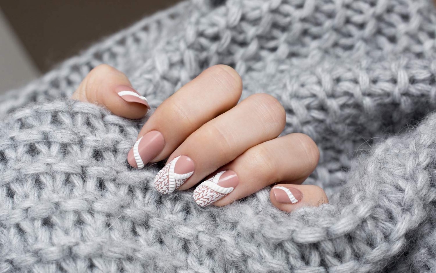 Не только на Новый год, но и в любой другой день зимы, можно выбрать необычный вязаный дизайн, который будет напоминать уютный теплый свитер или шарф. Новогодний маникюр может быть дополнен жидким металлом, блестками и другими яркими элементами.