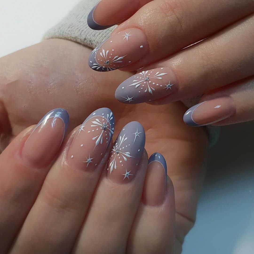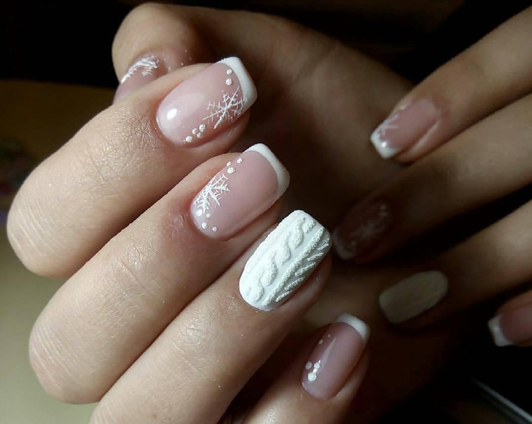 - Френч с сияющими снежинками: Добавьте к классическому белому френч яркие снежинки, чтобы создать волшебное зимнее настроение.