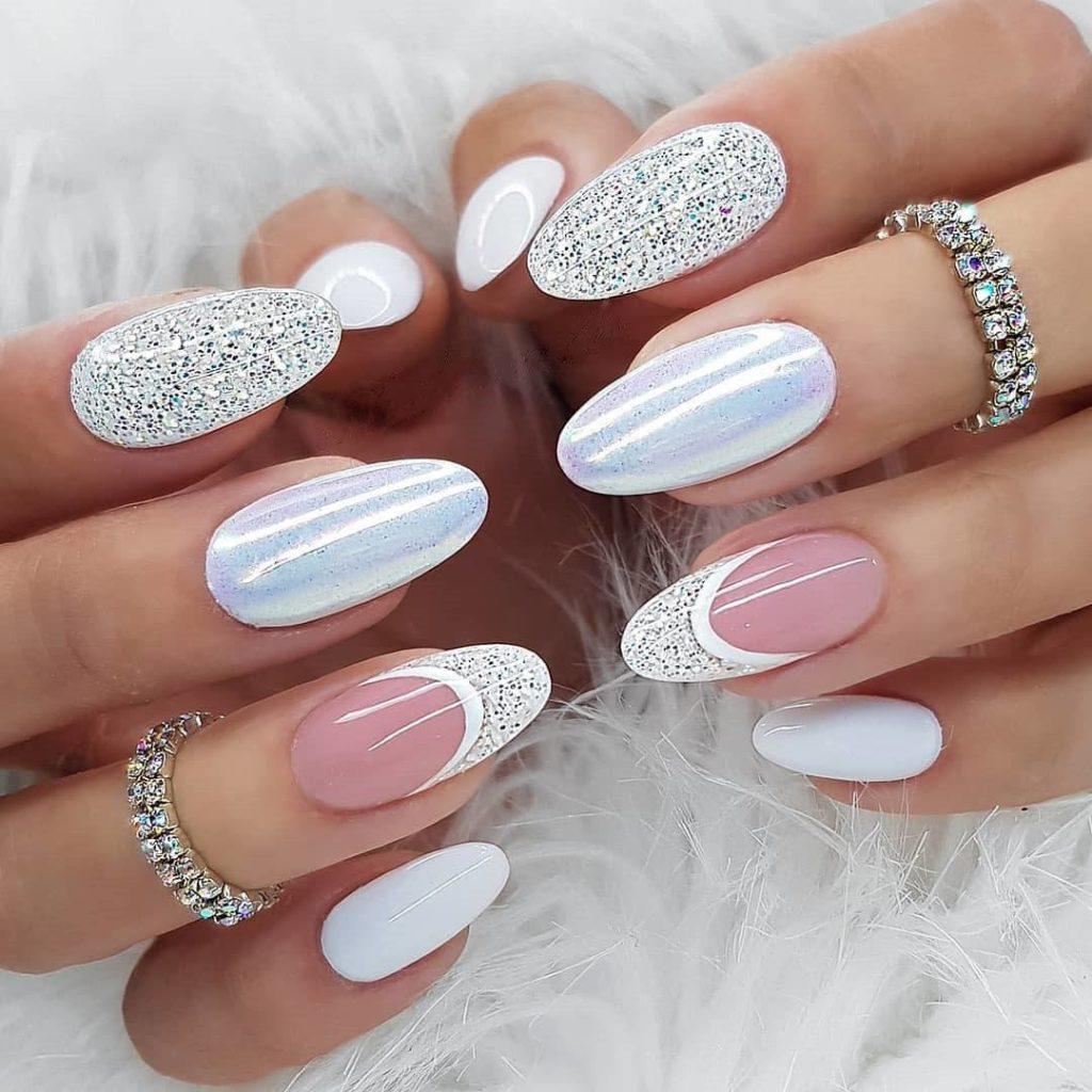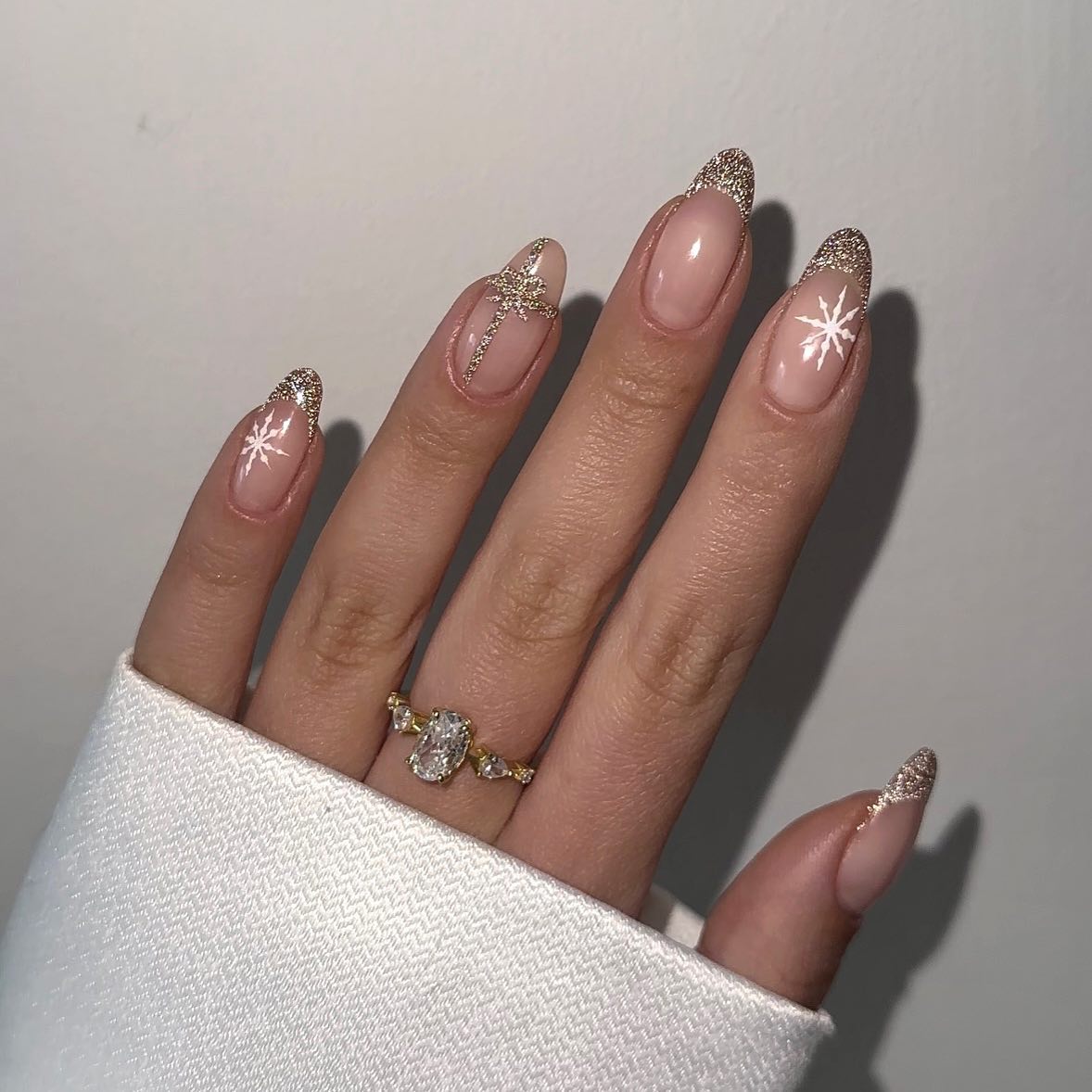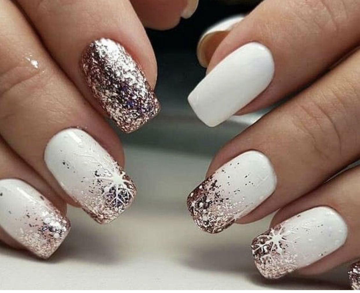 Чтобы вас вдохновить на создание своего новогоднего маникюра френч с блестками, мы собрали некоторые потрясающие идеи, которые помогут вам сделать ваши ногти настоящими ювелирными украшениями:
