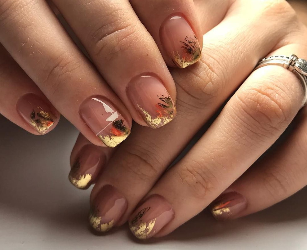 Использование фольги позволяет создать яркий и необычный новогодний френч. Кончики ногтей следует оформить гель-лаком с эффектом расплавленного металла. Отличным решением станет оформление ногтевой пластины фольгой. Дизайн может не иметь четкие линии и формы, чтобы он получился ярким и праздничным.