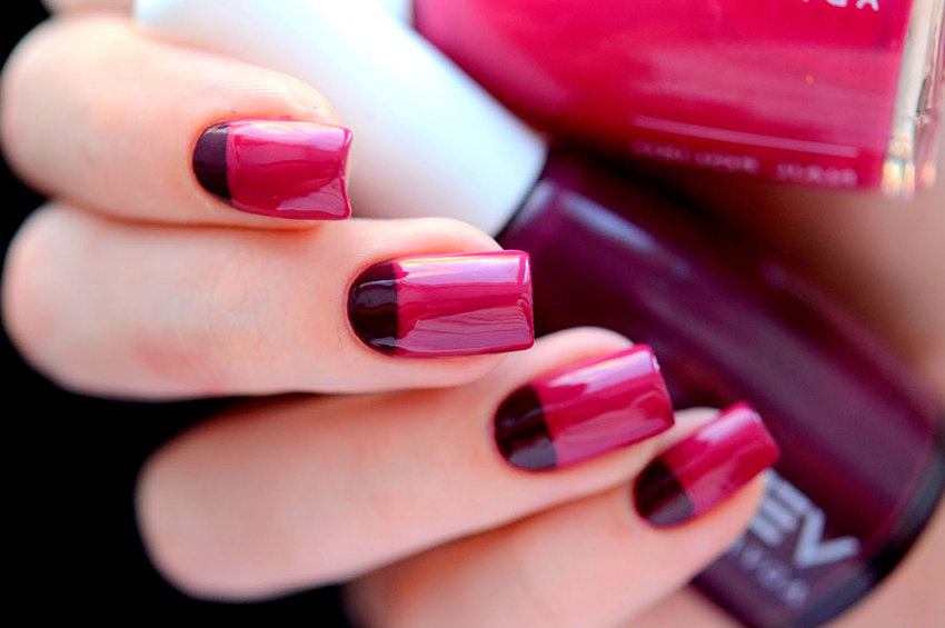 - Чтобы создать шедевр в виде аккуратного двухцветного френча, старайтесь подбирать лаки одной текстуры и одного производителя. Если один лак густой, а другой отличается прозрачностью, то красивый маникюр вряд ли получится.