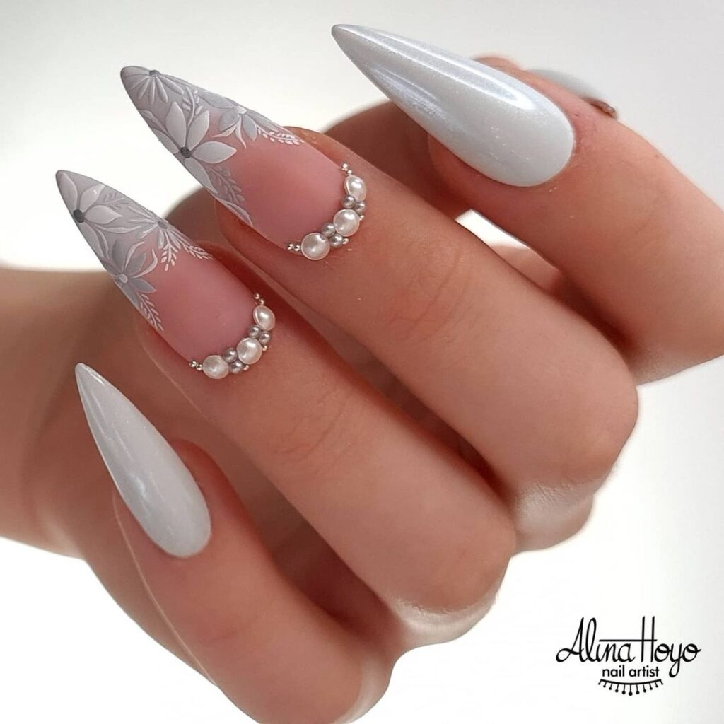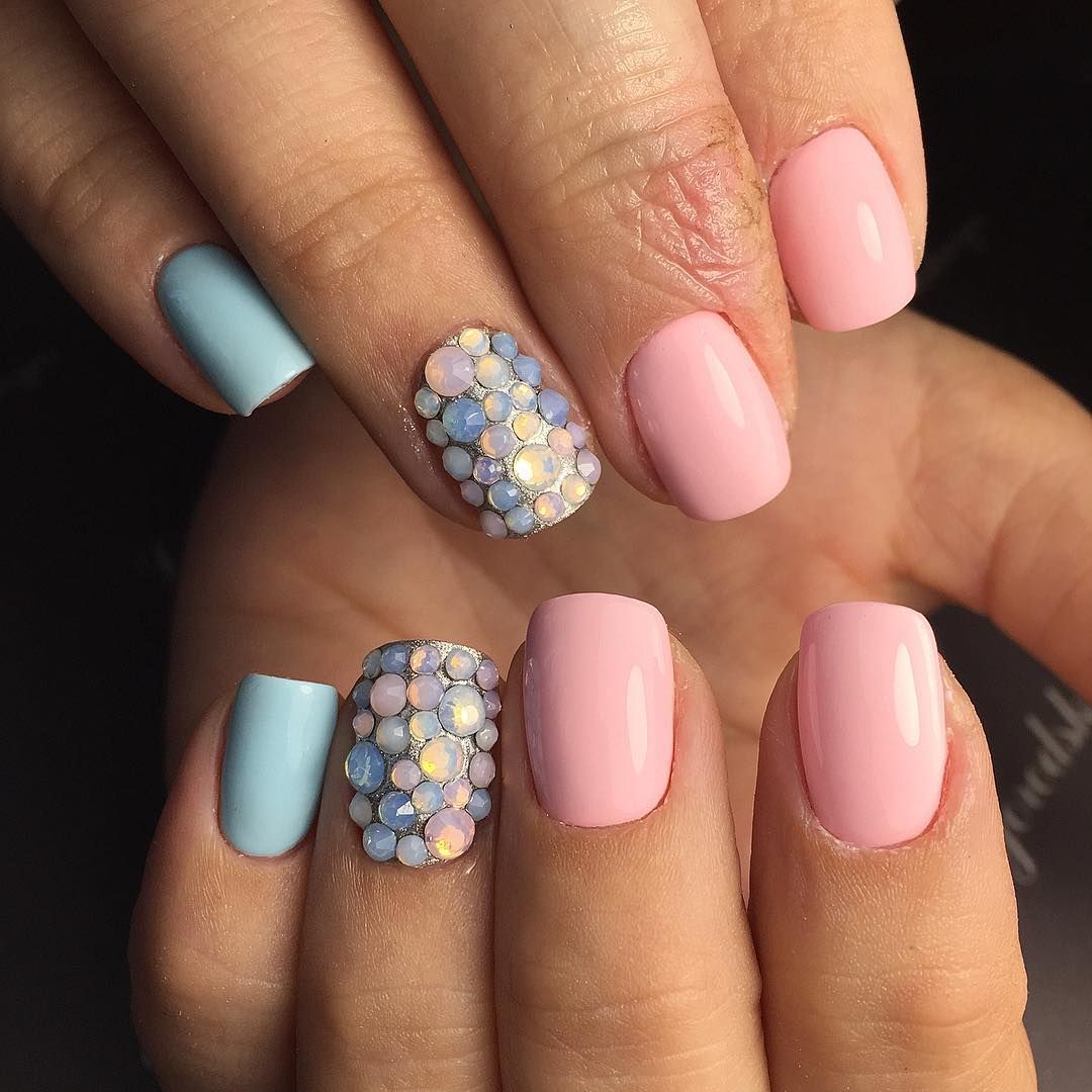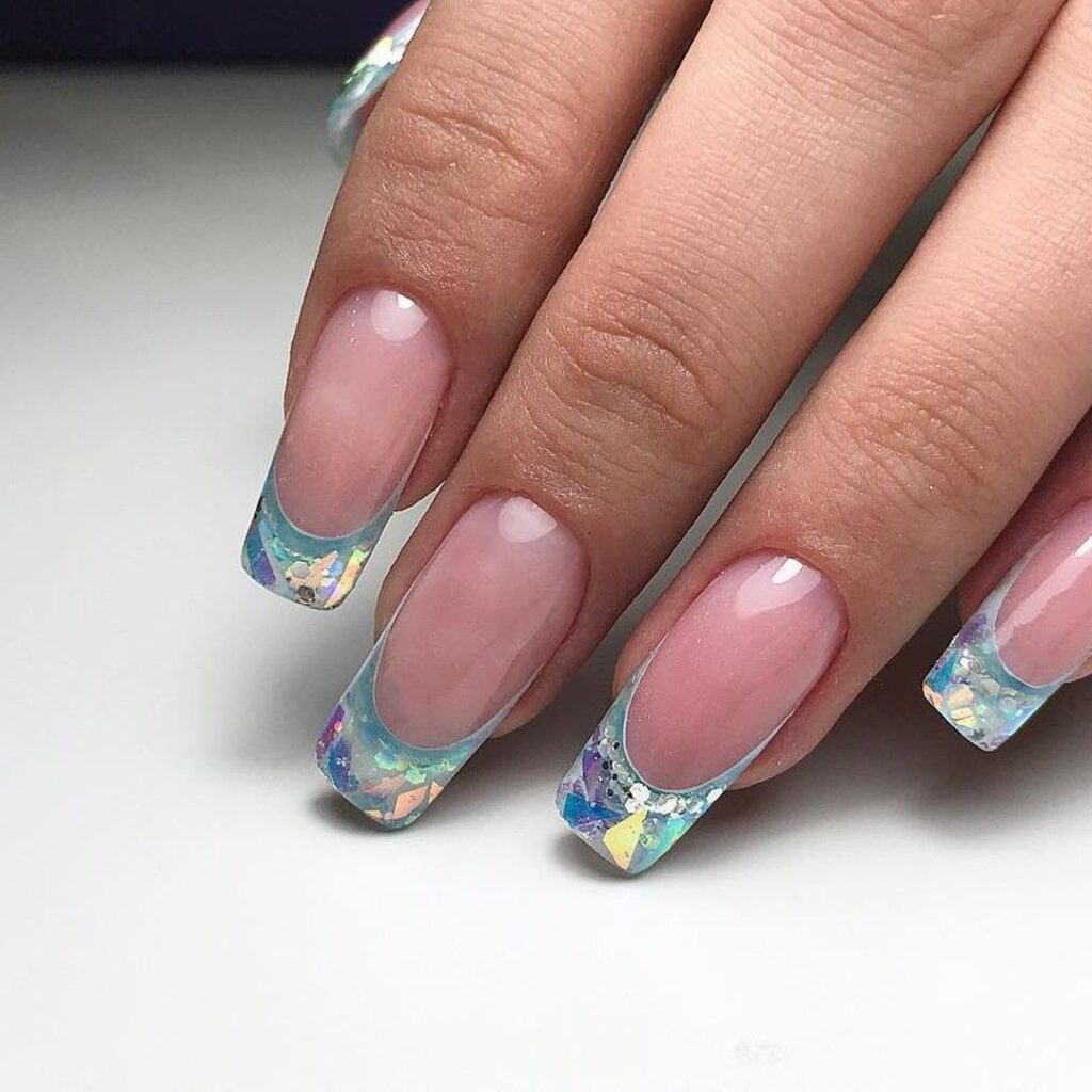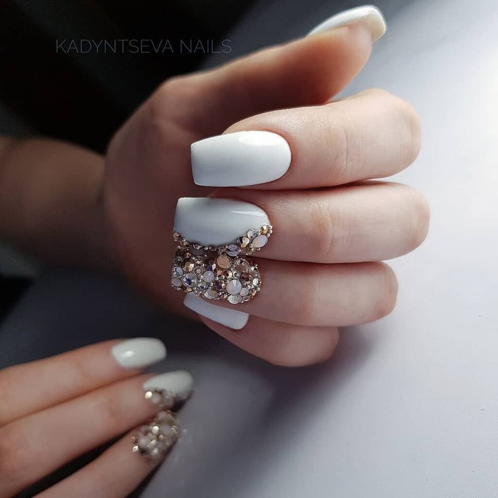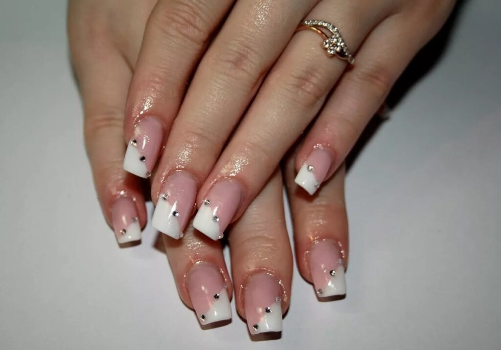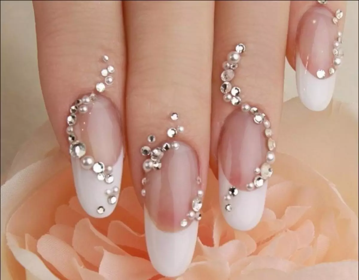 с камнями и объёмными элементами – светлый френч – идеальная пара для любых сияющих украшений;