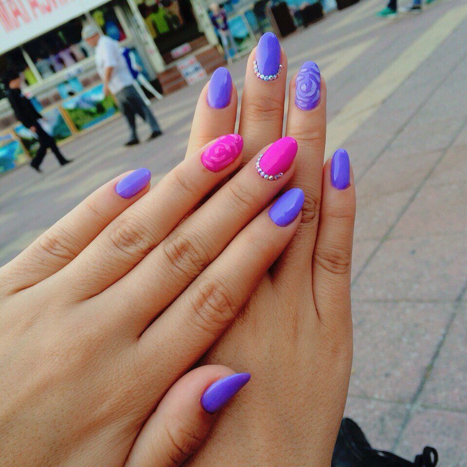 - Перед тем, как делать маникюр полихромного типа, проверьте сочетание цветов как при ярком искусственном, так и при естественном освещении комнаты.