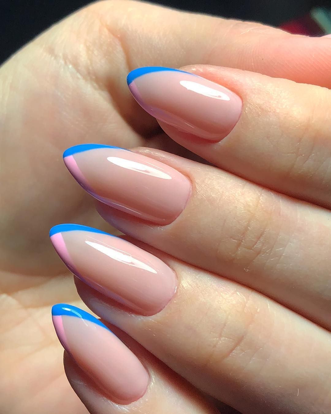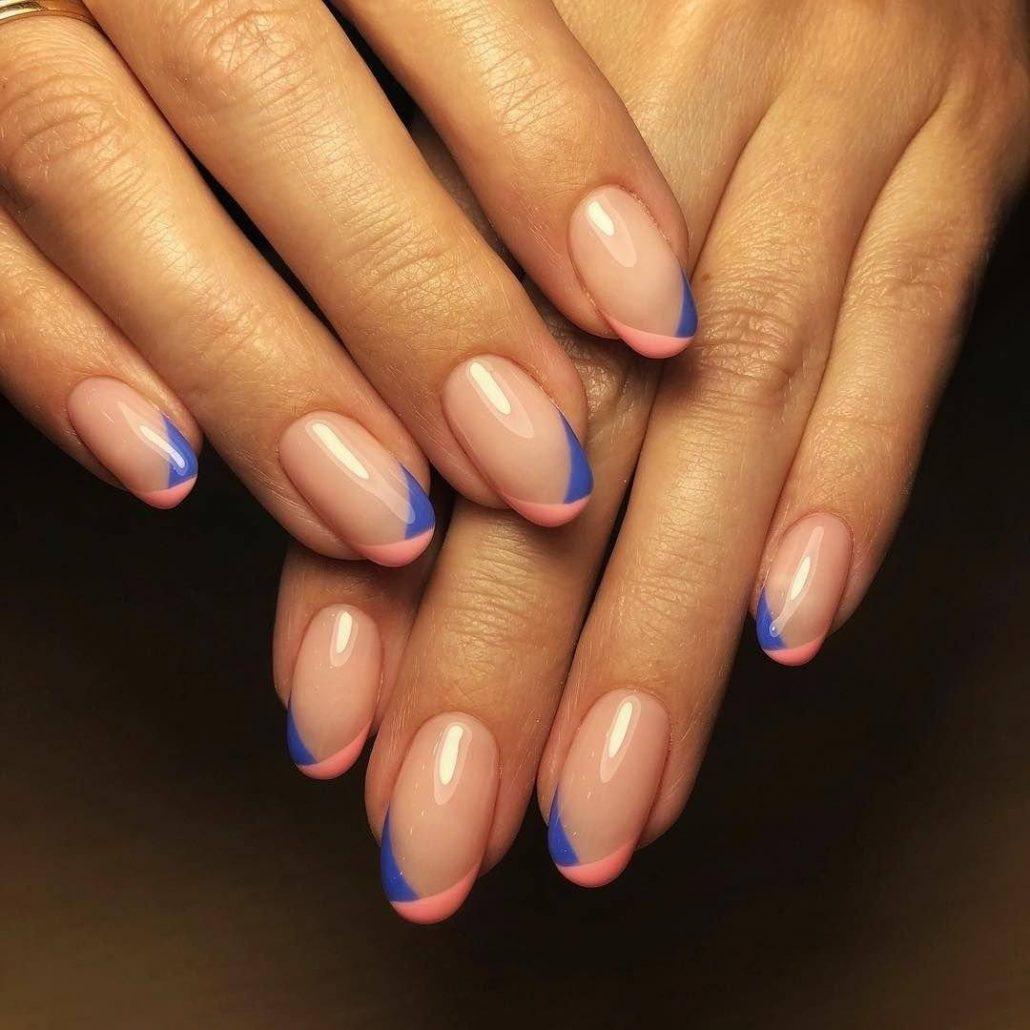Ярко синие кончики сделают ваш французский маникюр мега модным в 2022 году, он шикарен как на коротких ногтях, так и на длинных.
