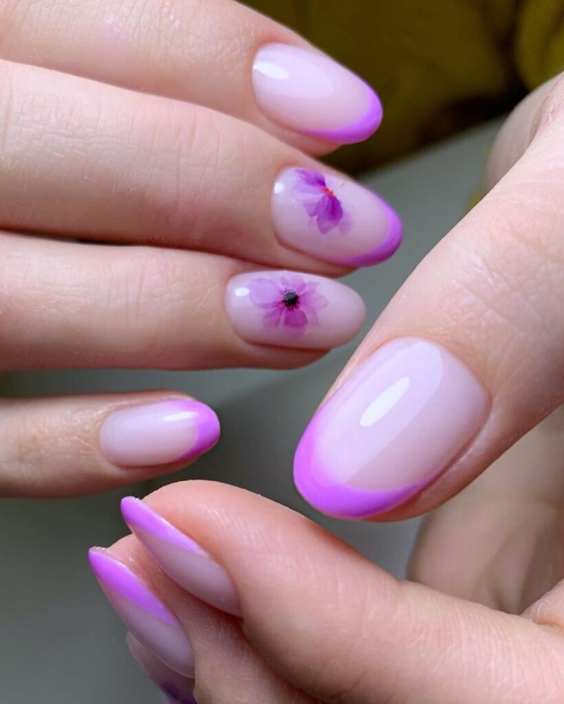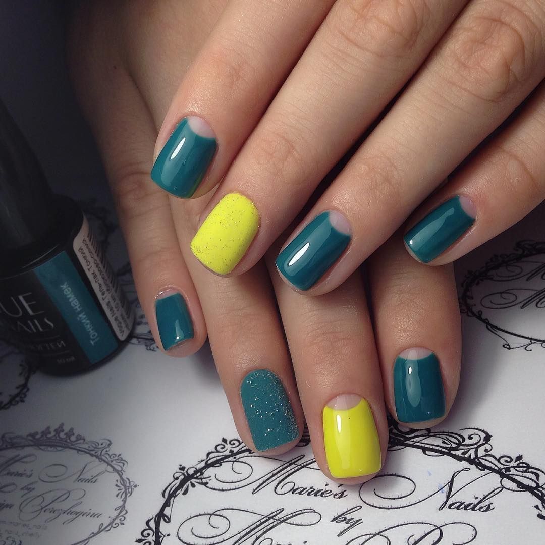 - Французский маникюр с нестандартными цветами Традиционно французский маникюр создается с использованием белого или натурального цвета для основы ногтей и розового или белого цвета для кончиков. Однако, в этом году набирают популярность нестандартные цветовые сочетания для французского маникюра, например, черный или темно-синий цвет вместо белого и яркие цвета для кончиков.