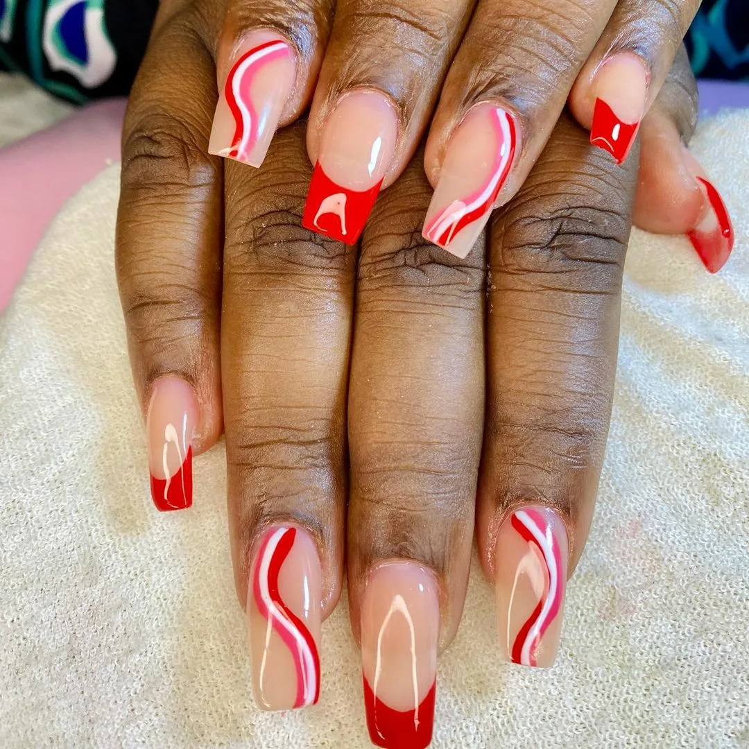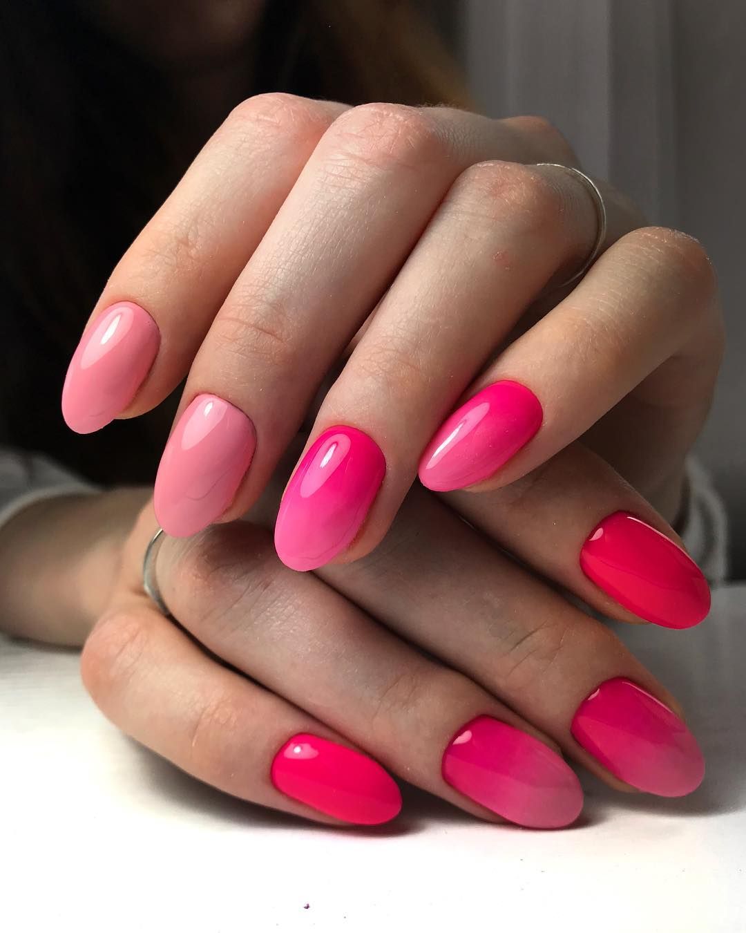 - Французский маникюр с омбре-эффектом Омбре-эффект — это плавный переход цвета с одного на другой. Этот эффект можно использовать для французского маникюра, создавая плавный переход цвета от основы ногтей к кончикам. Например, можно использовать розовый цвет для основы и переходить к красному цвету на кончиках.