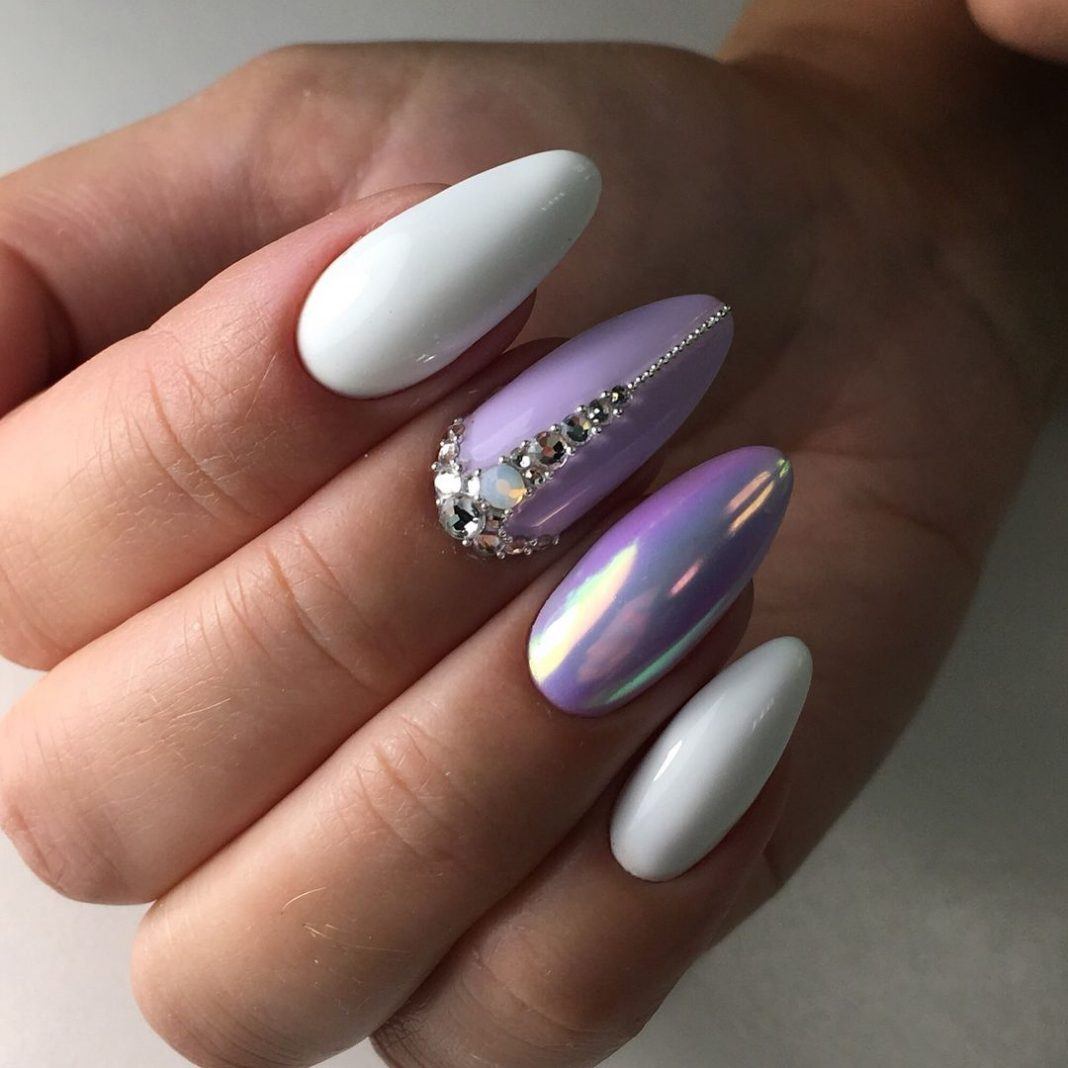 цветная база под молочной – верхнее покрытие сгладит основной цвет и сделает дизайн загадочным и романтичным;