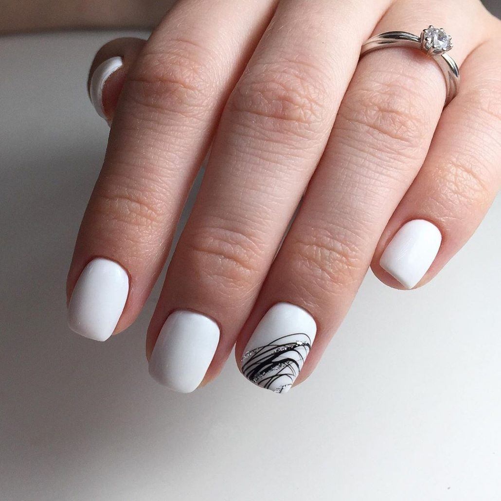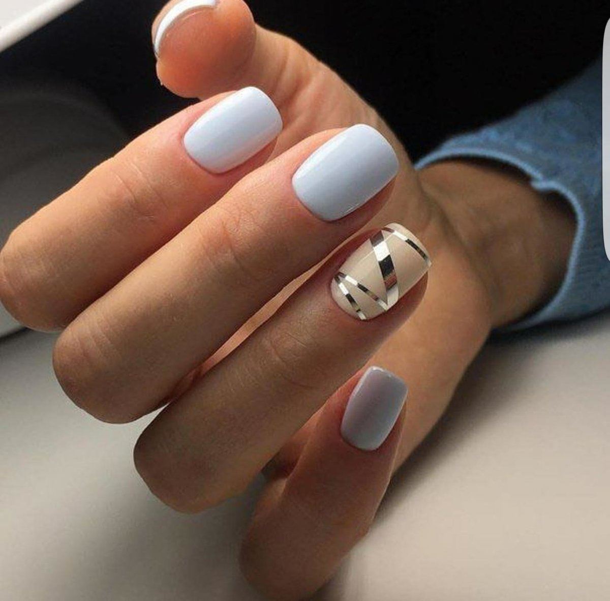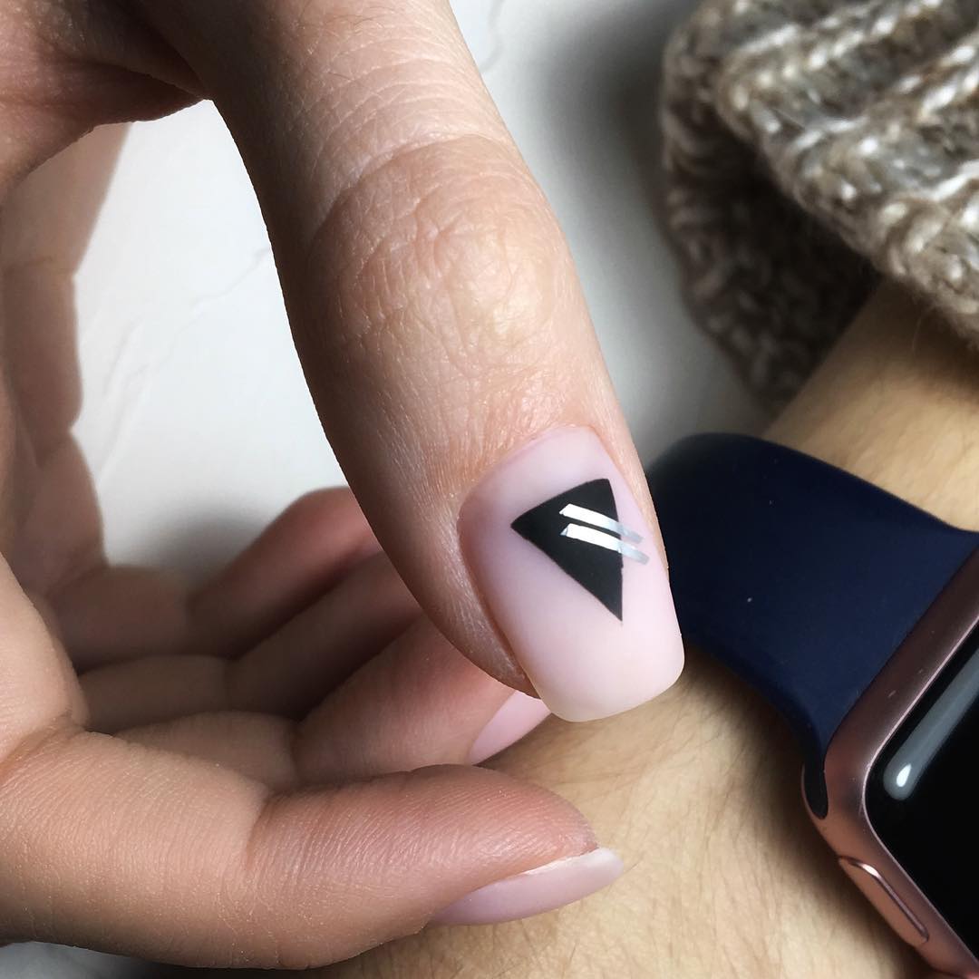 Что касается геометрического оформления, то оно также остается в тренде. Однотонное покрытие выполняет роль основы, на которой особенно красиво смотрится выбранный рисунок. В зависимости от количества деталей в виде полосок и геометрических фигур маникюр может быть лаконичным или достаточно интенсивным.
