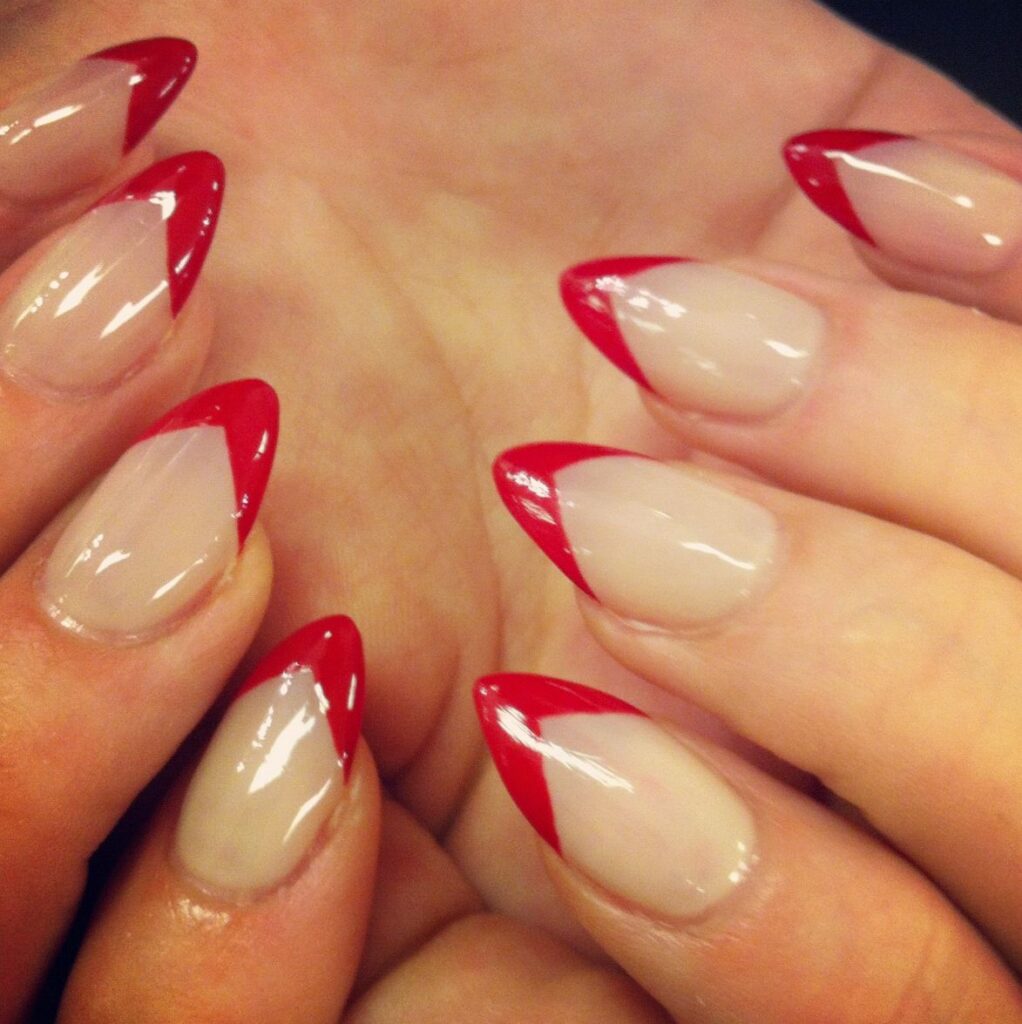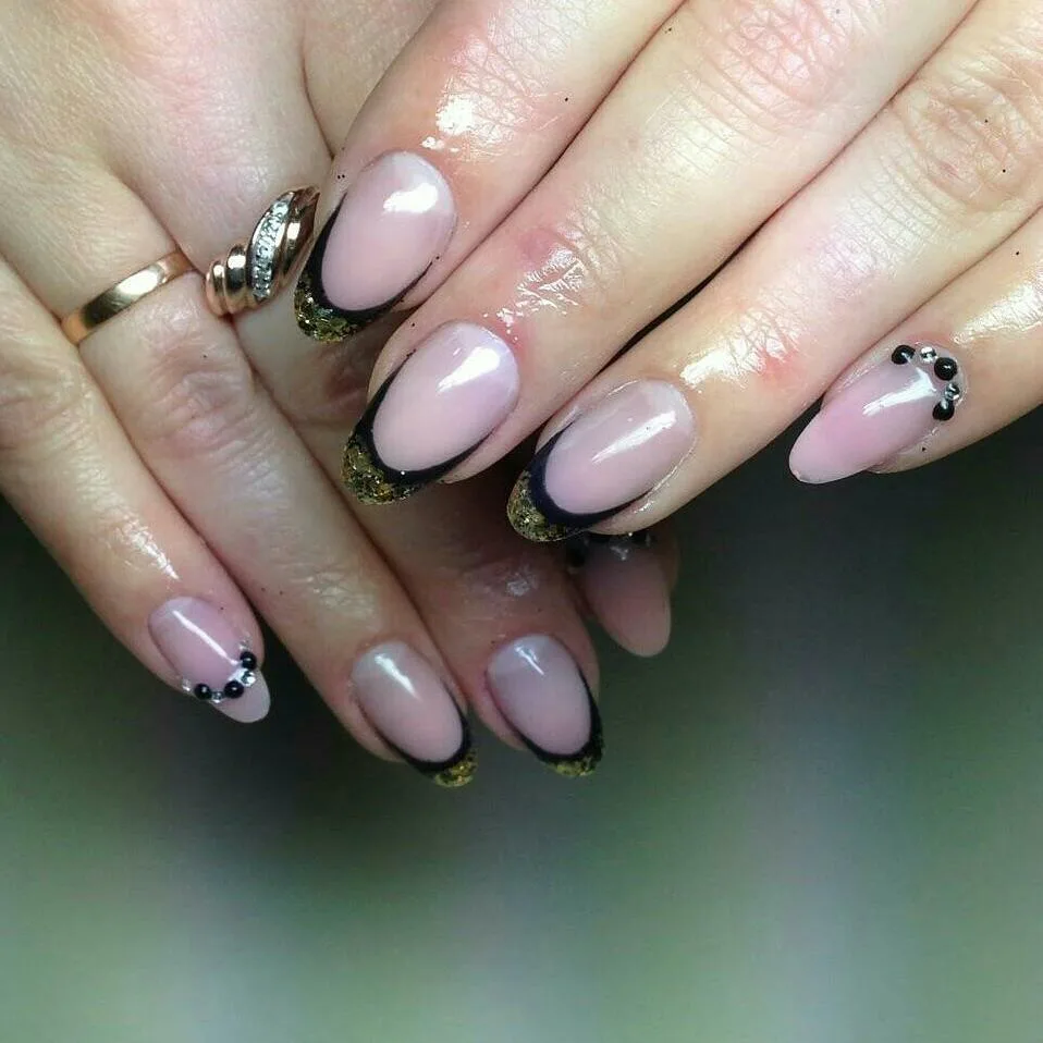 треугольный кончик – кайму формируют в виде треугольника, что особенно удачно смотрится на миндальных ноготках;