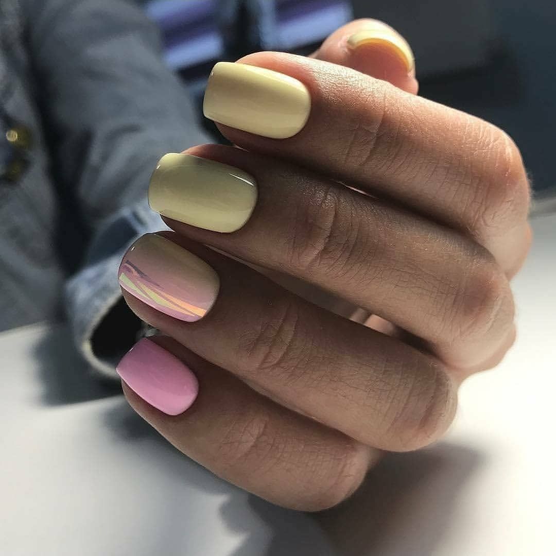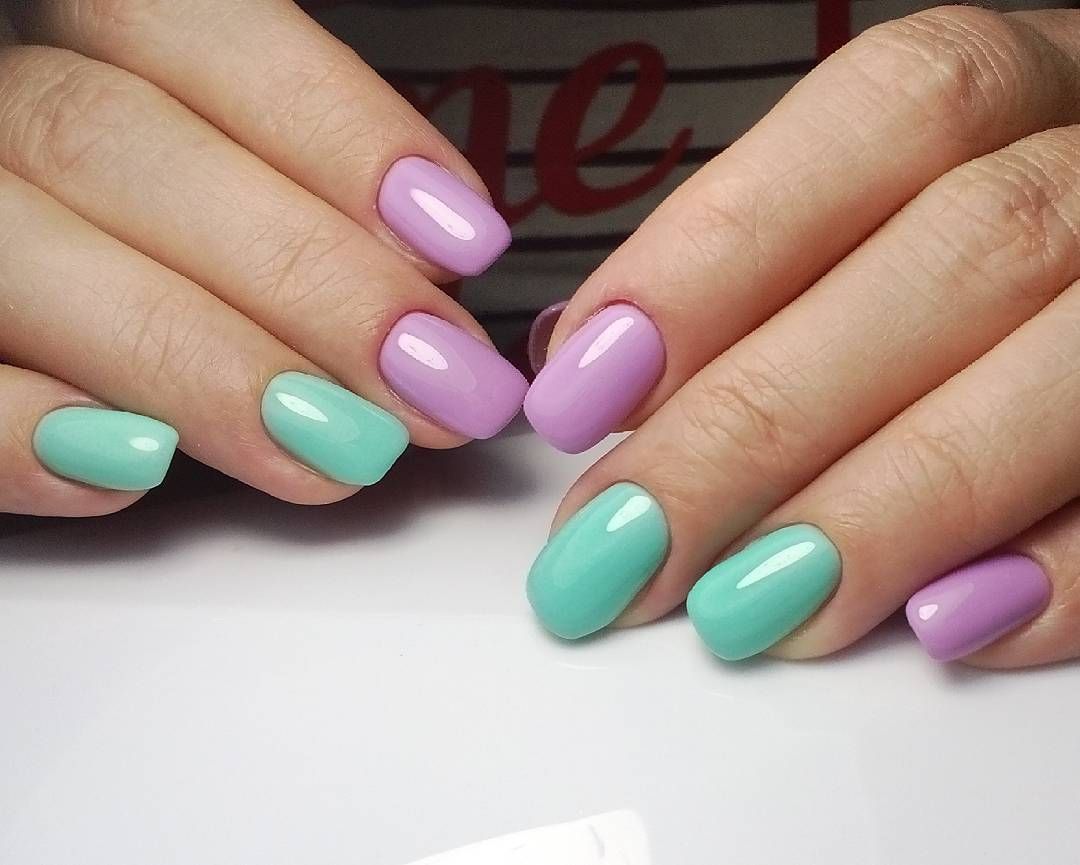 - Классическими сочетаниями цветов в маникюре можно считать сочетание светлых пастельных оттенков: нежного бежевого, светло-желтого, нежно-розового, голубого, мятного.