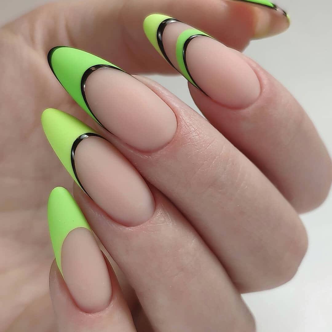 Зеленые оттенки лака в 2024 году продолжают завоевывать наши сердца, френч в зеленом цвете сделает ваш маникюр более интересным и эффектным.