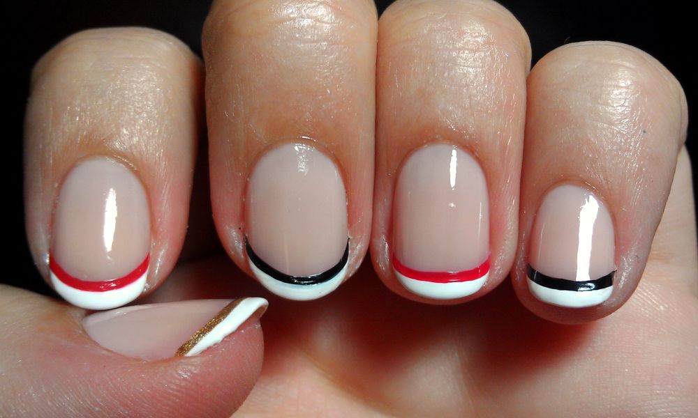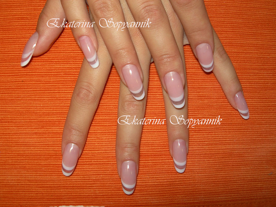 Так называют рисунок на кончиках ногтей, который выполнен несколькими цветами в виде параллельных полосок. Их накладывают друг на друга или прорисовывают с небольшим отступом.