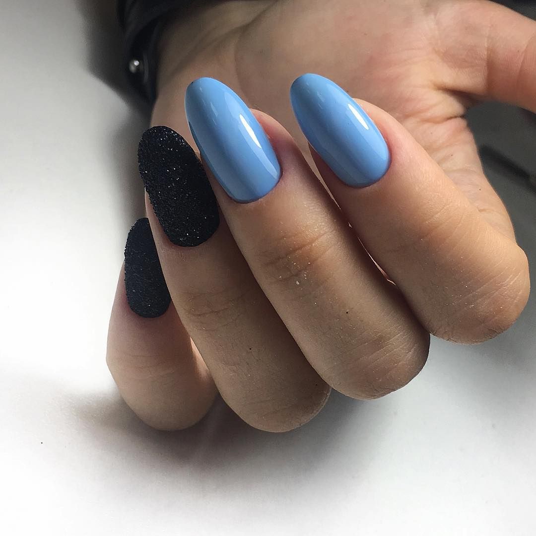 Блестящий маникюр — идея для самых смелых. В сочетании с черной краской блестки выглядят максимально нарядно, поэтому с ними можно легко отправиться на любую вечеринку. Будьте осторожны, ведь приближается новый год!
