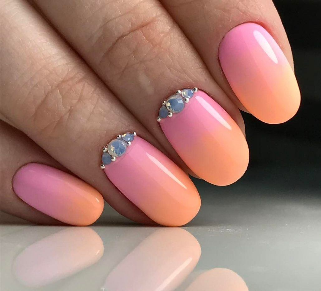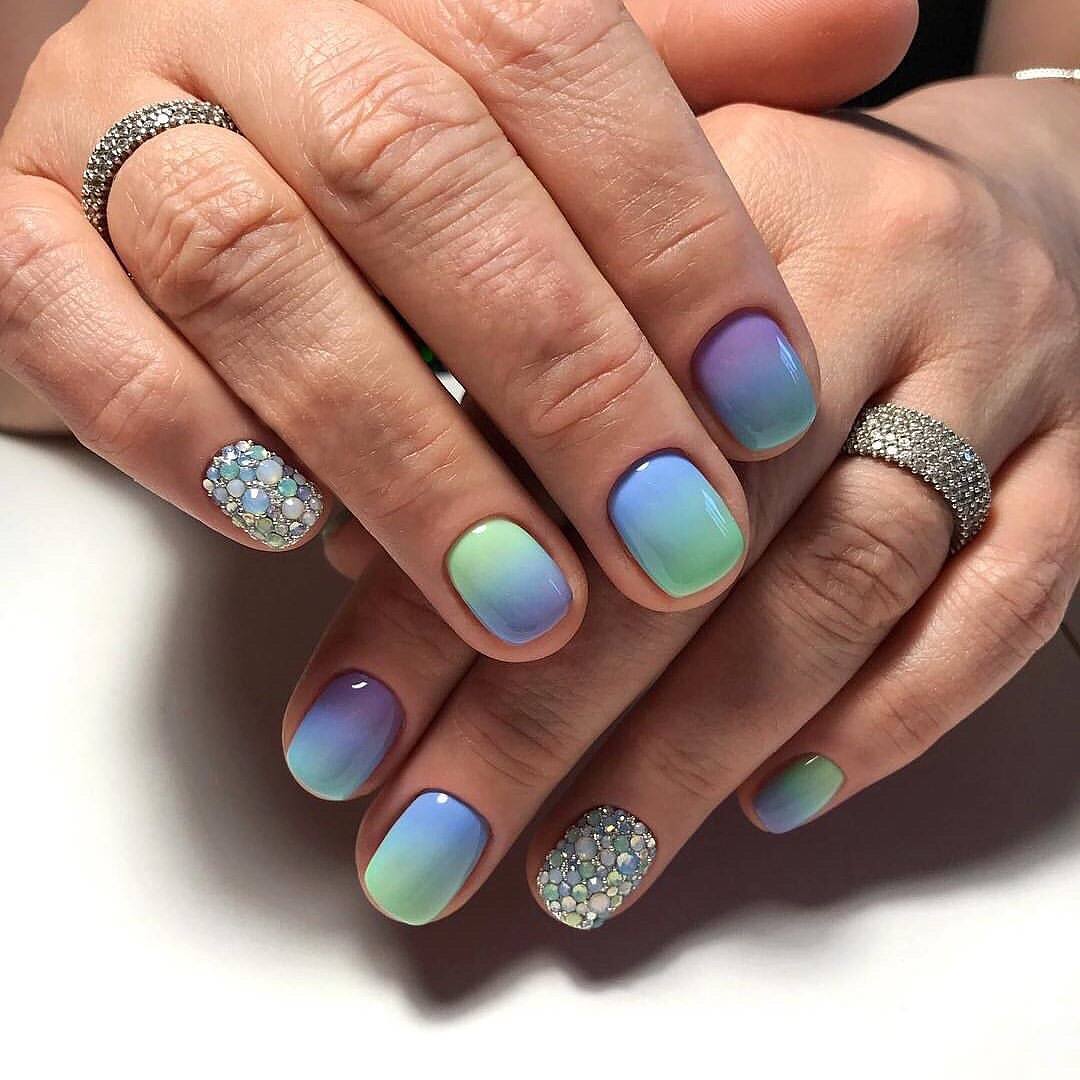 Градиенты — еще один способ сочетать разные цвета. Такой вариант понравится любительницам спокойного маникюра. Он легко впишется в ваш повседневный стиль и дополнит любой вечерний образ.