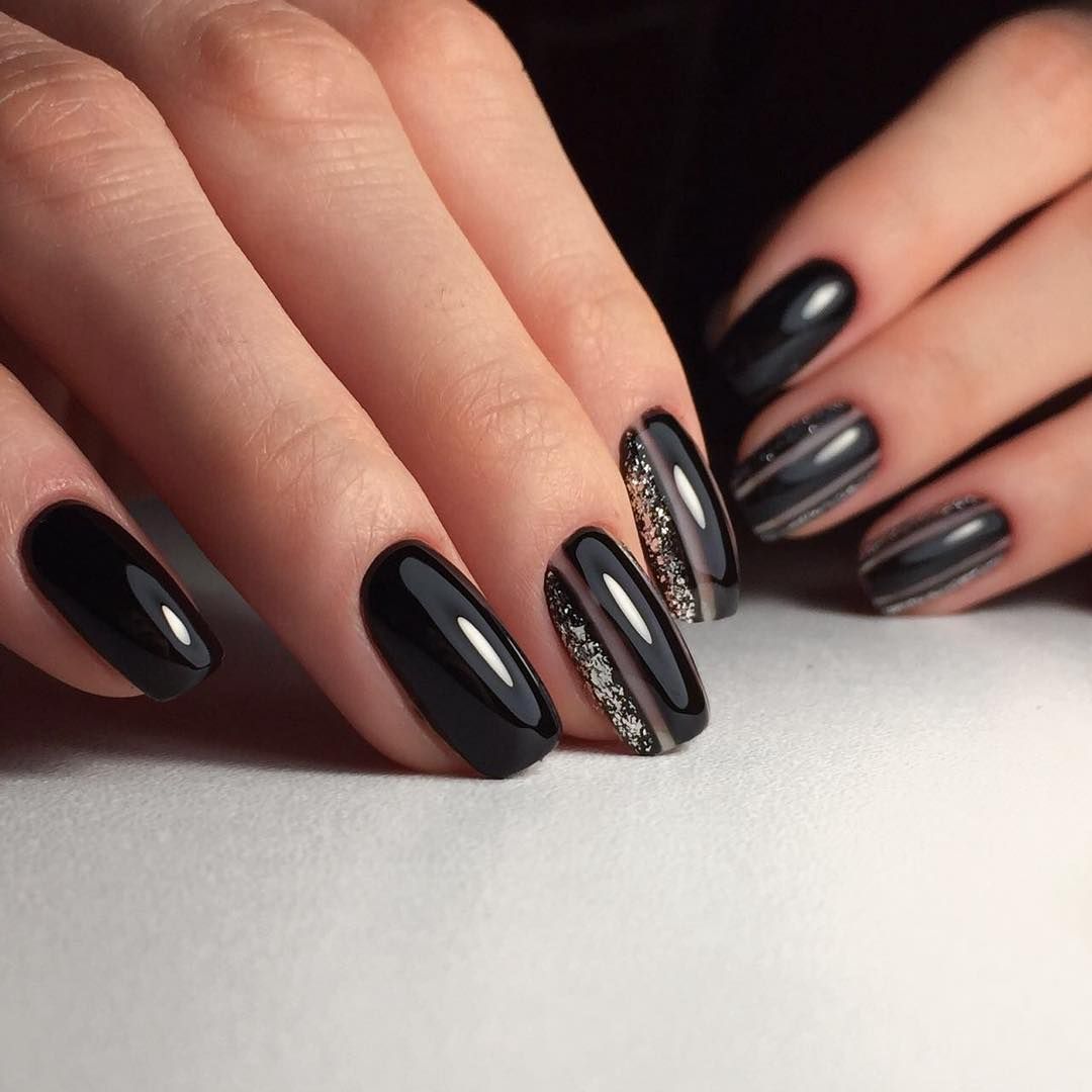 Актуальное всесезонное украшение. Черный лак с добавлением фольги станет еще более ярким и заметным.
