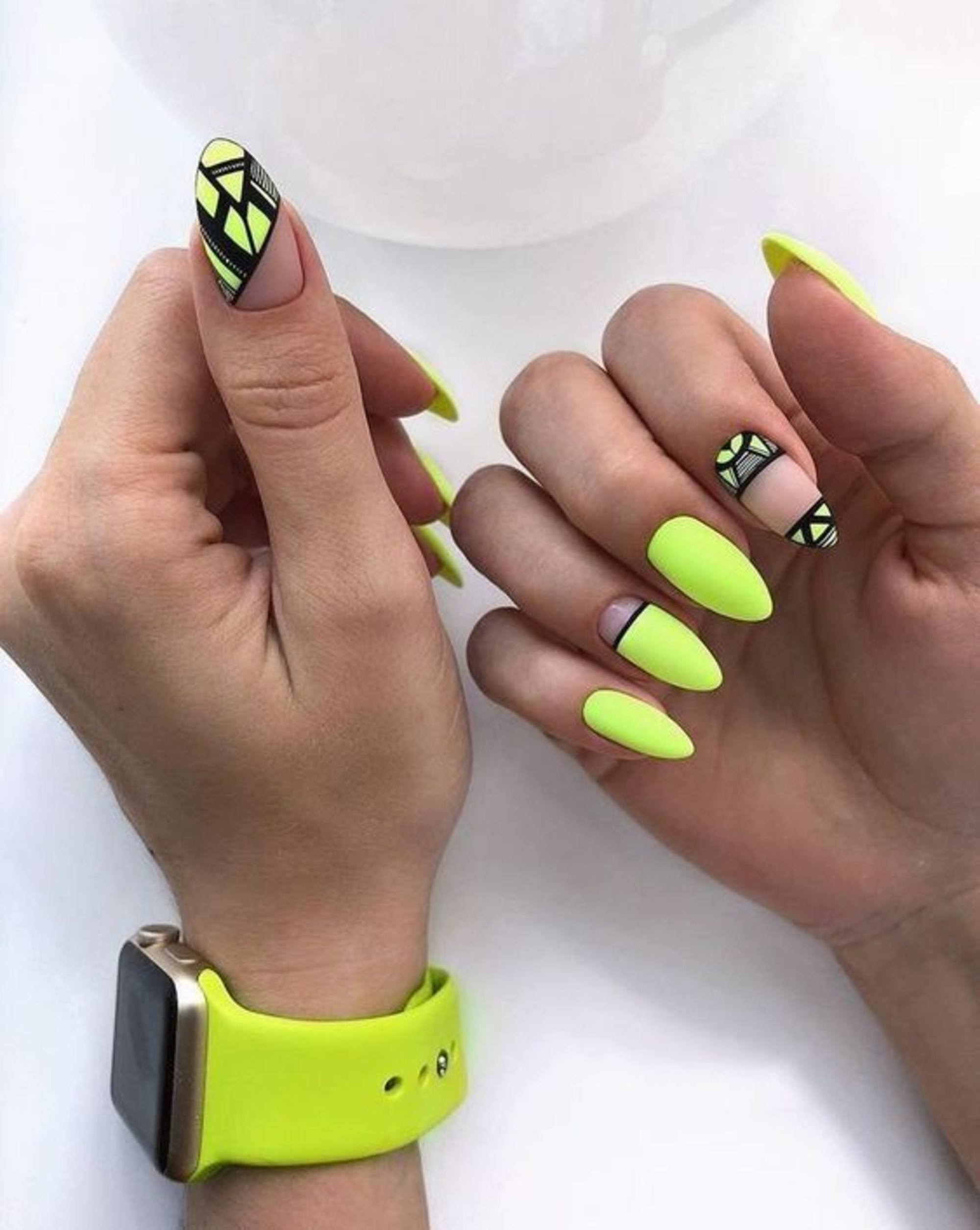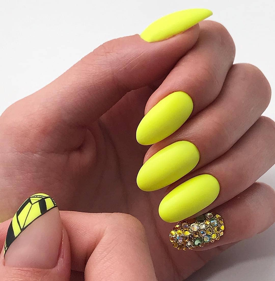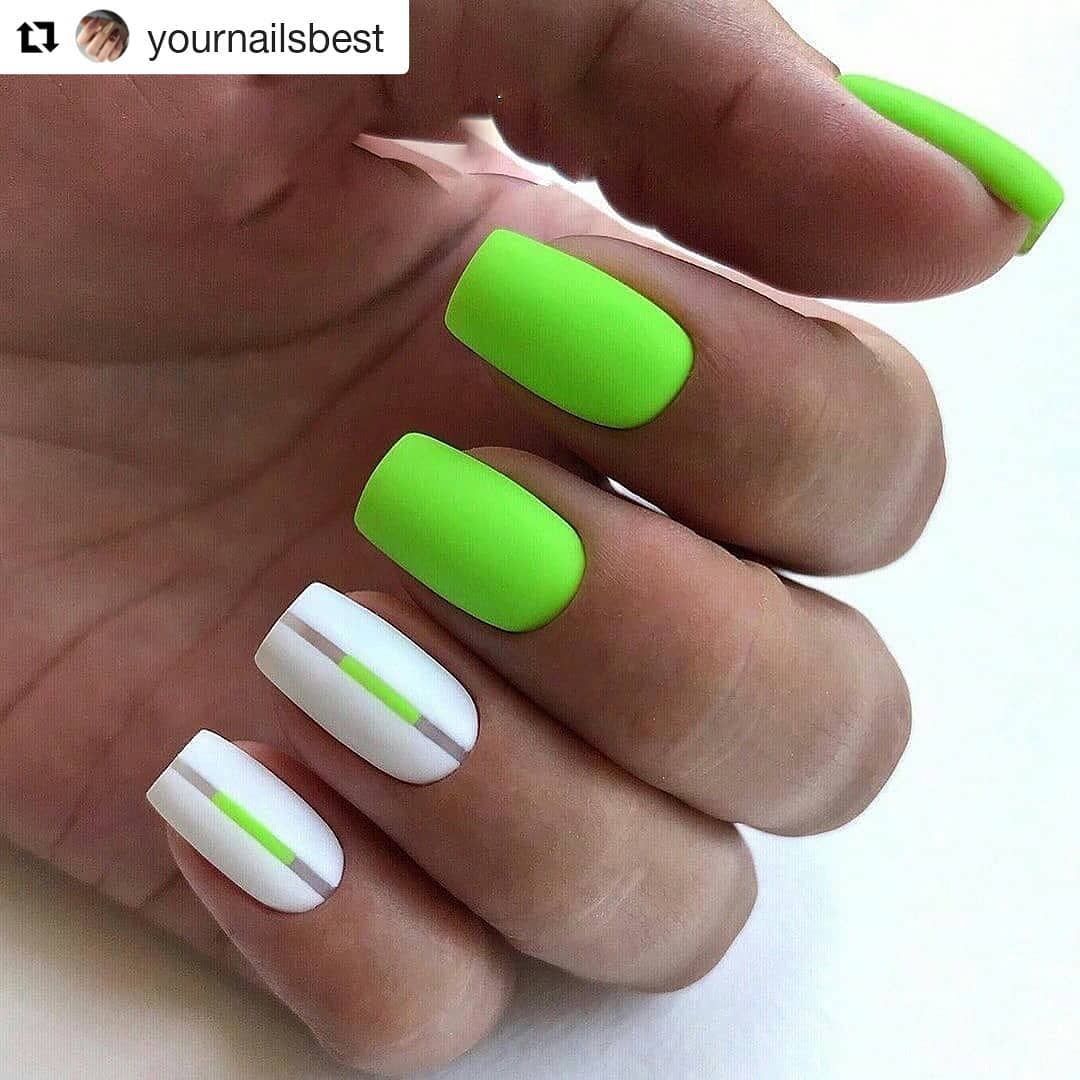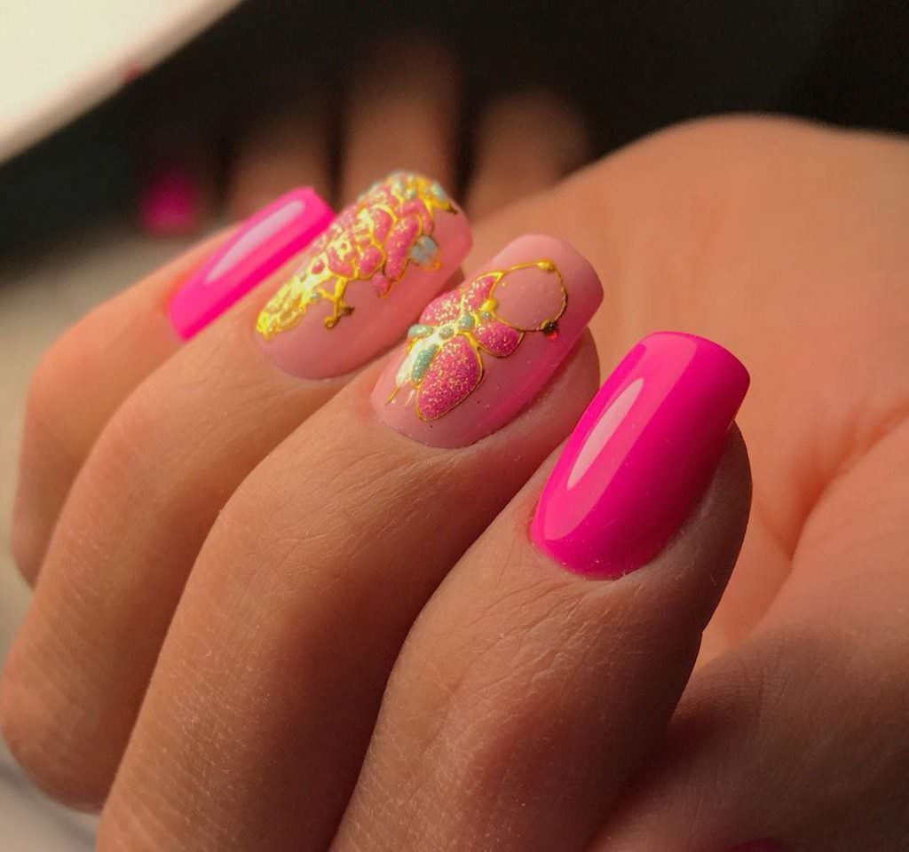 - неоновый маникюр лучше выглядит на коротких ногтях и ногтях средней длины. На длинных ногтях неоновые оттенки также могут смотреться красиво, но при условии незначительного их использования в общем дизайне.
