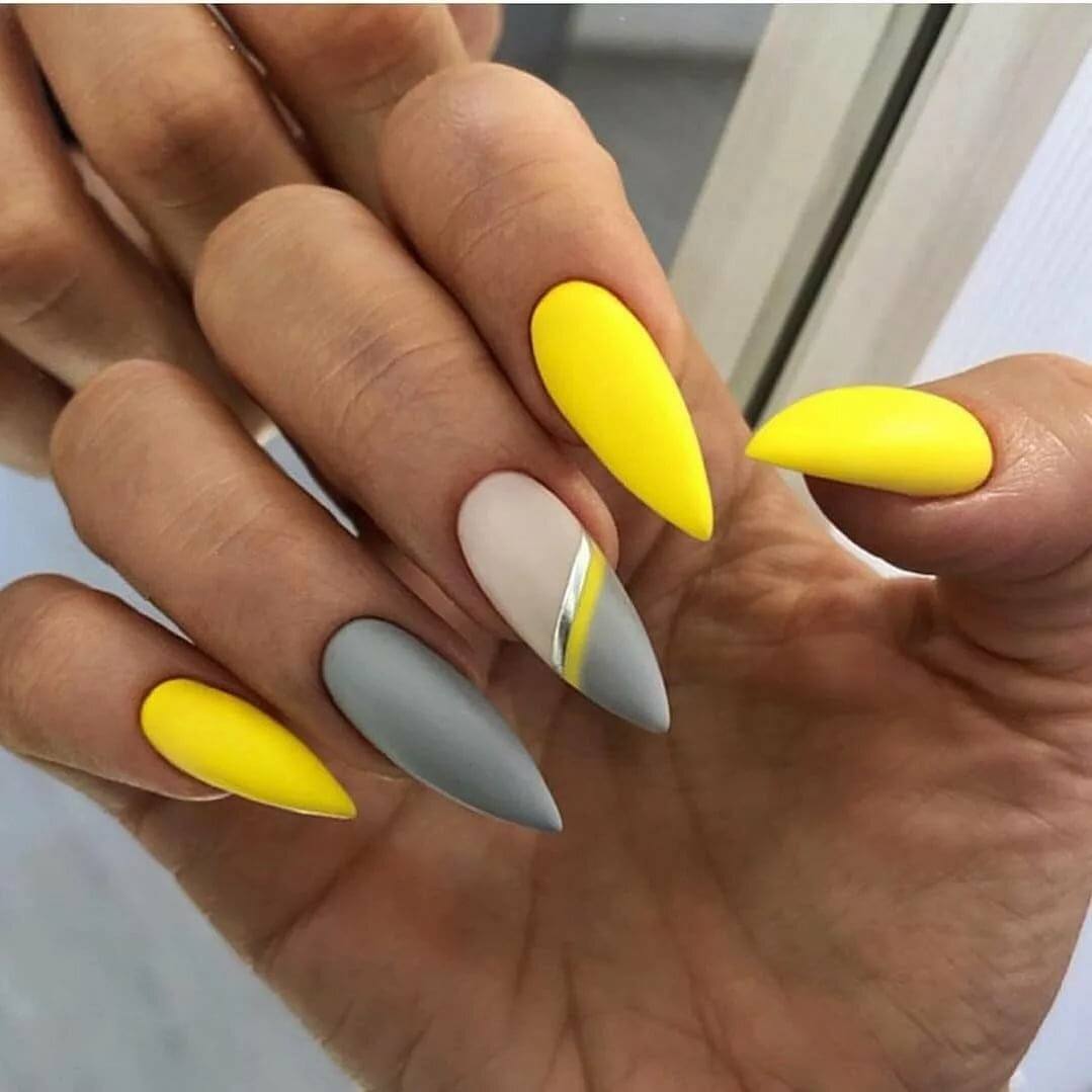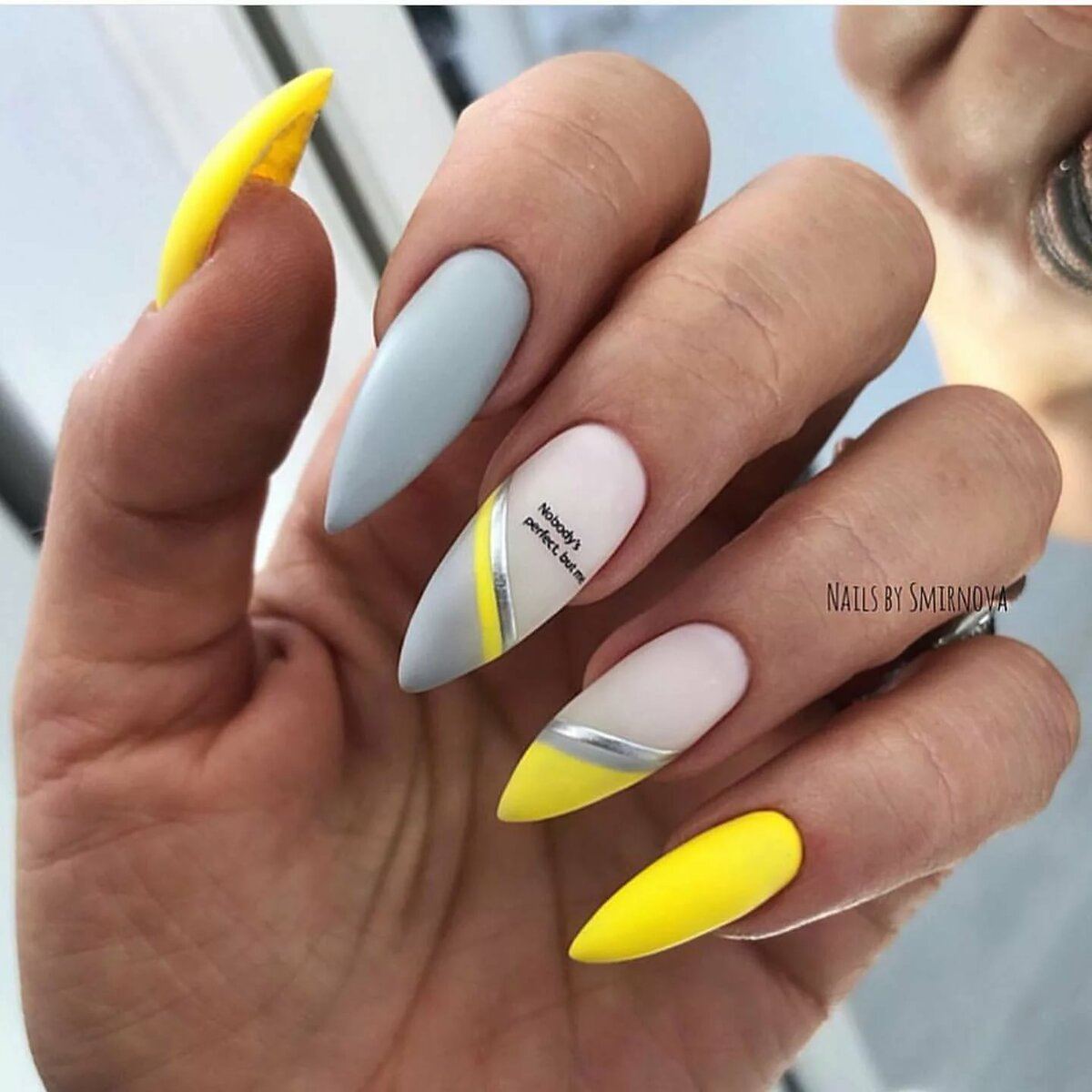 Холодные серебрянные ногти в сочетании с яркими оттенками также смотрятся броско.
