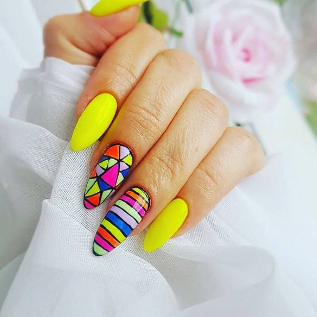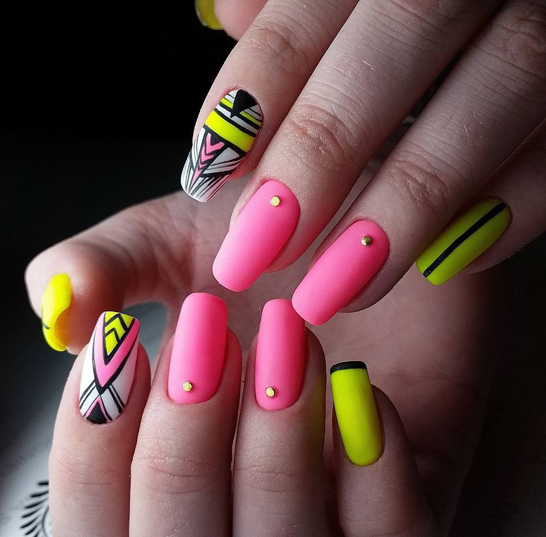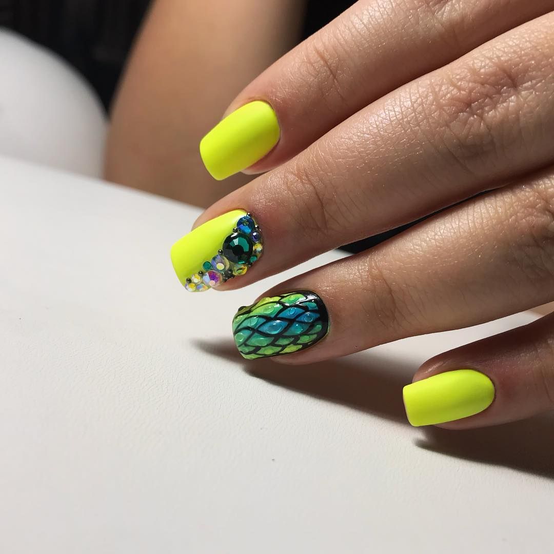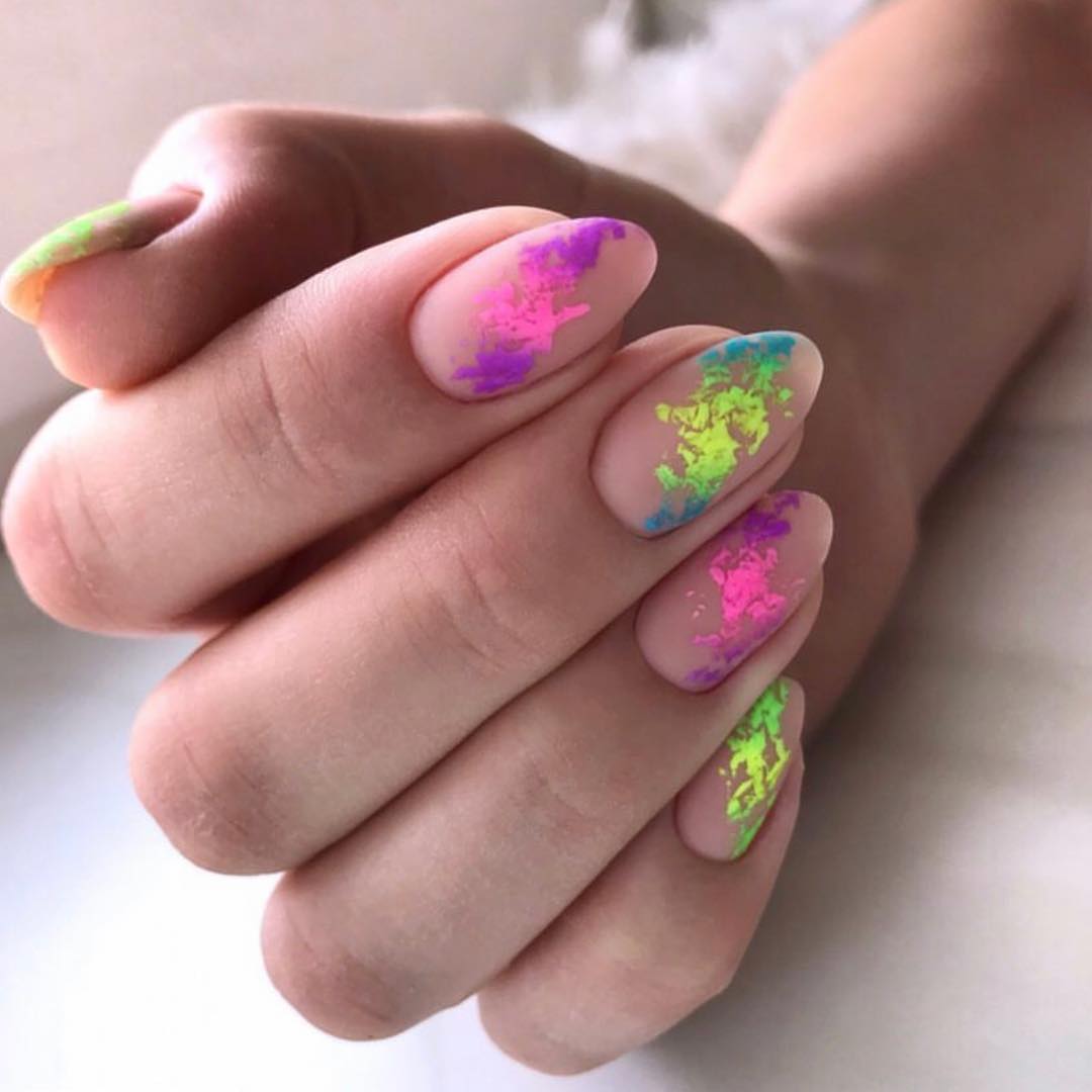 - маникюр в неоновых тонах бросается в глаза, поэтому покрытие должно быть идеальным. Ногти требуют тщательной подготовки и полировки, на ногтях не должно быть затеков и не прокрашенных зон.