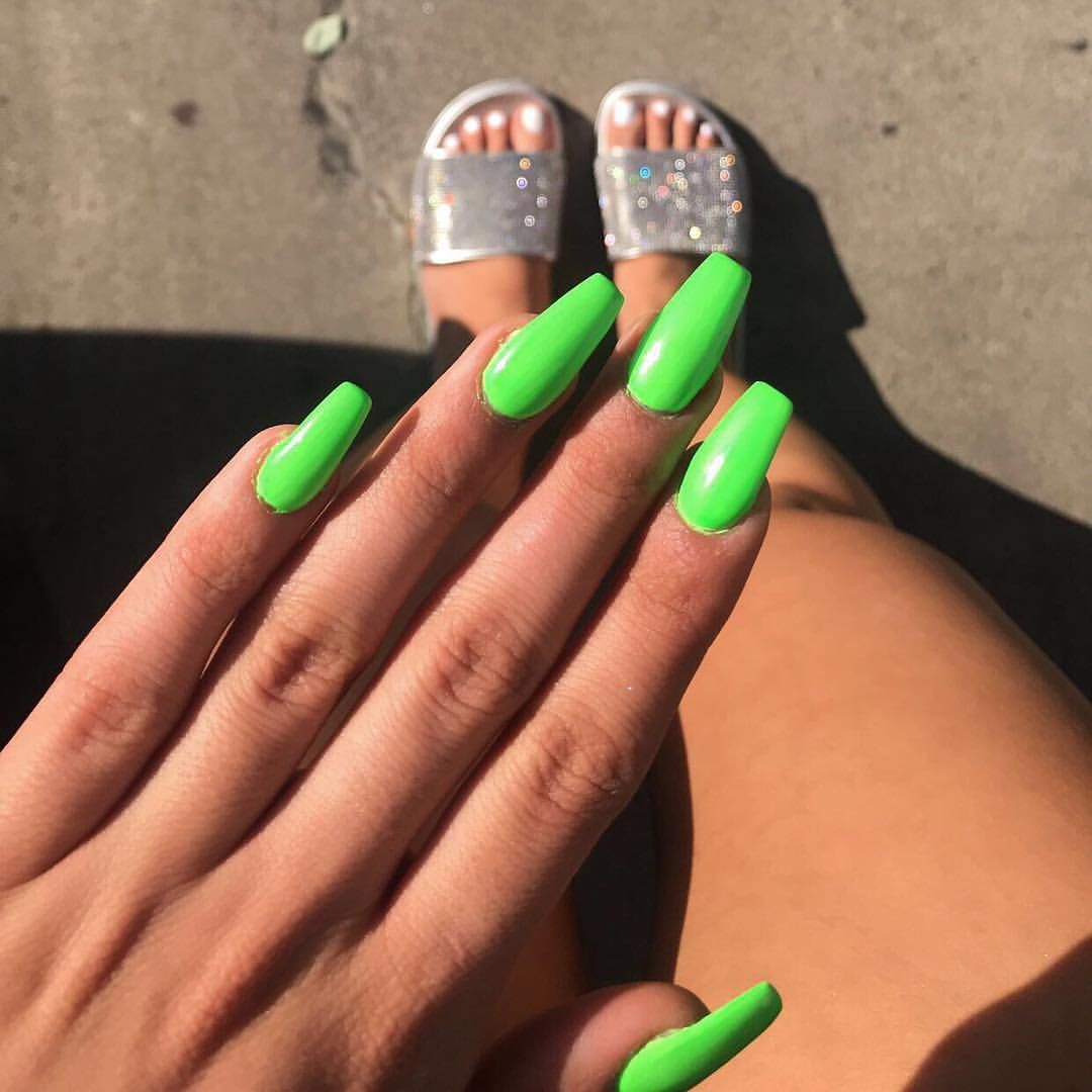 Неоновые ногти были популярны в начале 90-х, когда мода приветствовала все элементы одежды и образа, которые выглядели ярко и заметно. Постепенно дизайн ногтей становился умереннее и аккуратнее, а неоновые оттенки стали восприниматься негативно.