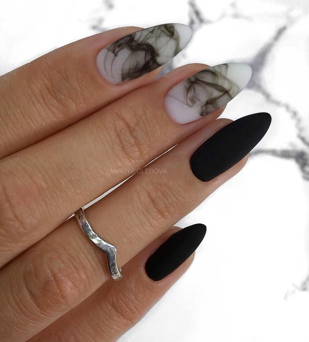 Огромный простор для творчества дает тот факт, что дым сам по себе склонен приобретать самые причудливые формы. Именно поэтому вы можете фантазировать, сколько вам угодно. В любом случае маникюр обязательно получится удачным. А сейчас мы предлагаем вам посмотреть несколько фото, которые подарят вам свежие идеи и помогут понять, насколько многогранным может быть этот дизайн.