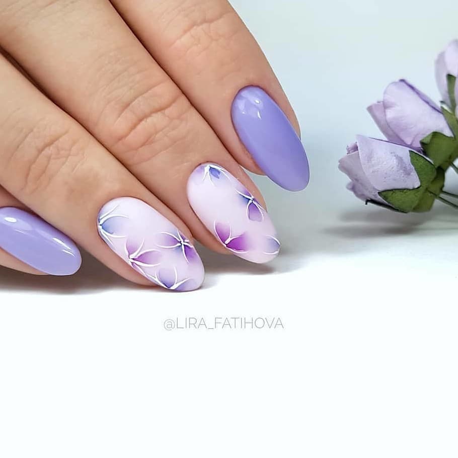 Украшать «дымчатым» декором можно ноготки любой длины и формы. Для создания необычного рисунка нужно применять гель-лак различной расцветки.