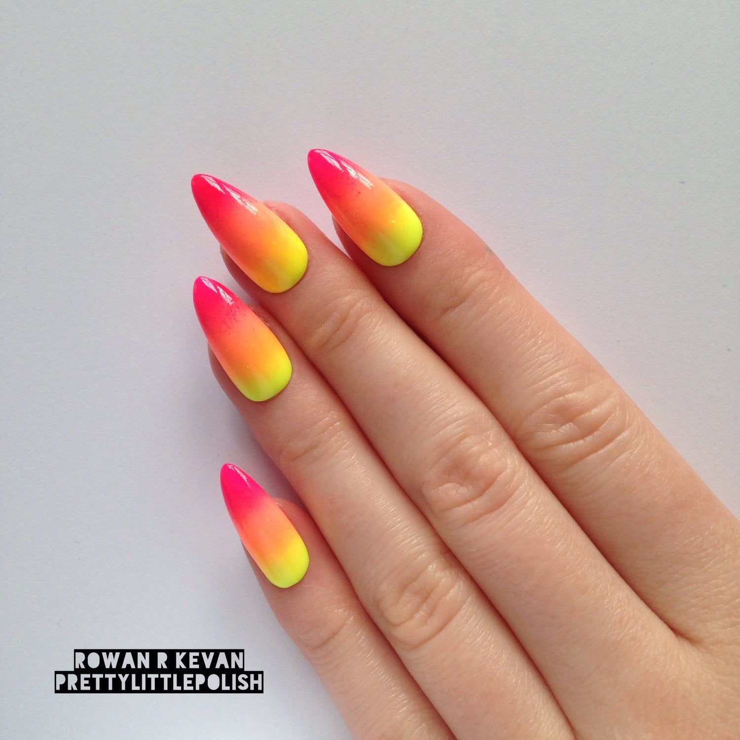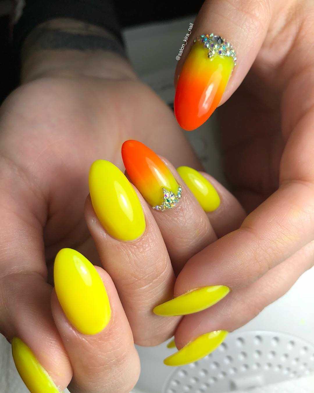 С помощью градиентного маникюра получится показать красоту сразу нескольких оттенков. Используйте все разнообразие неоновых тонов в одном нейл-арте. Яркие оттенки хорошо растушевываются и гармонируют друг с другом.