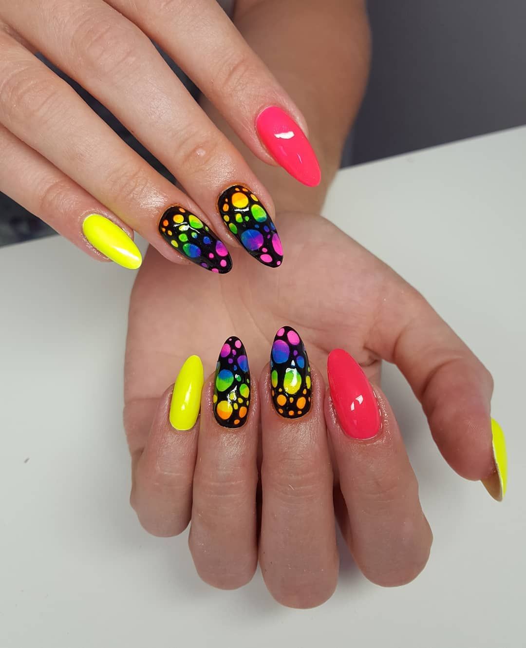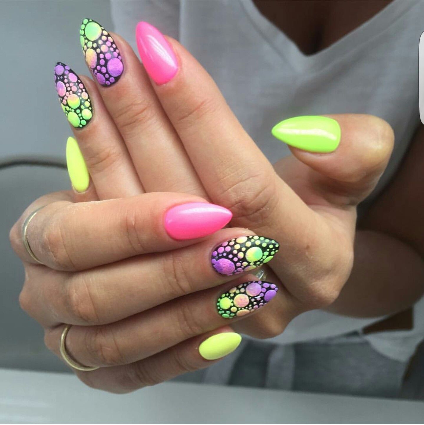 Попробуйте выполнить на ногтях неоновый маникюр, и вы убедитесь насколько оригинально они выглядят в вашем образе.