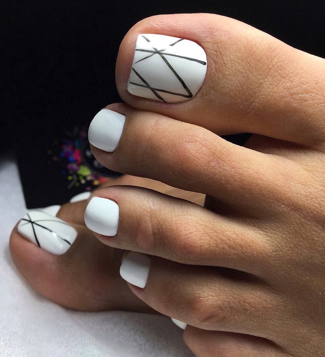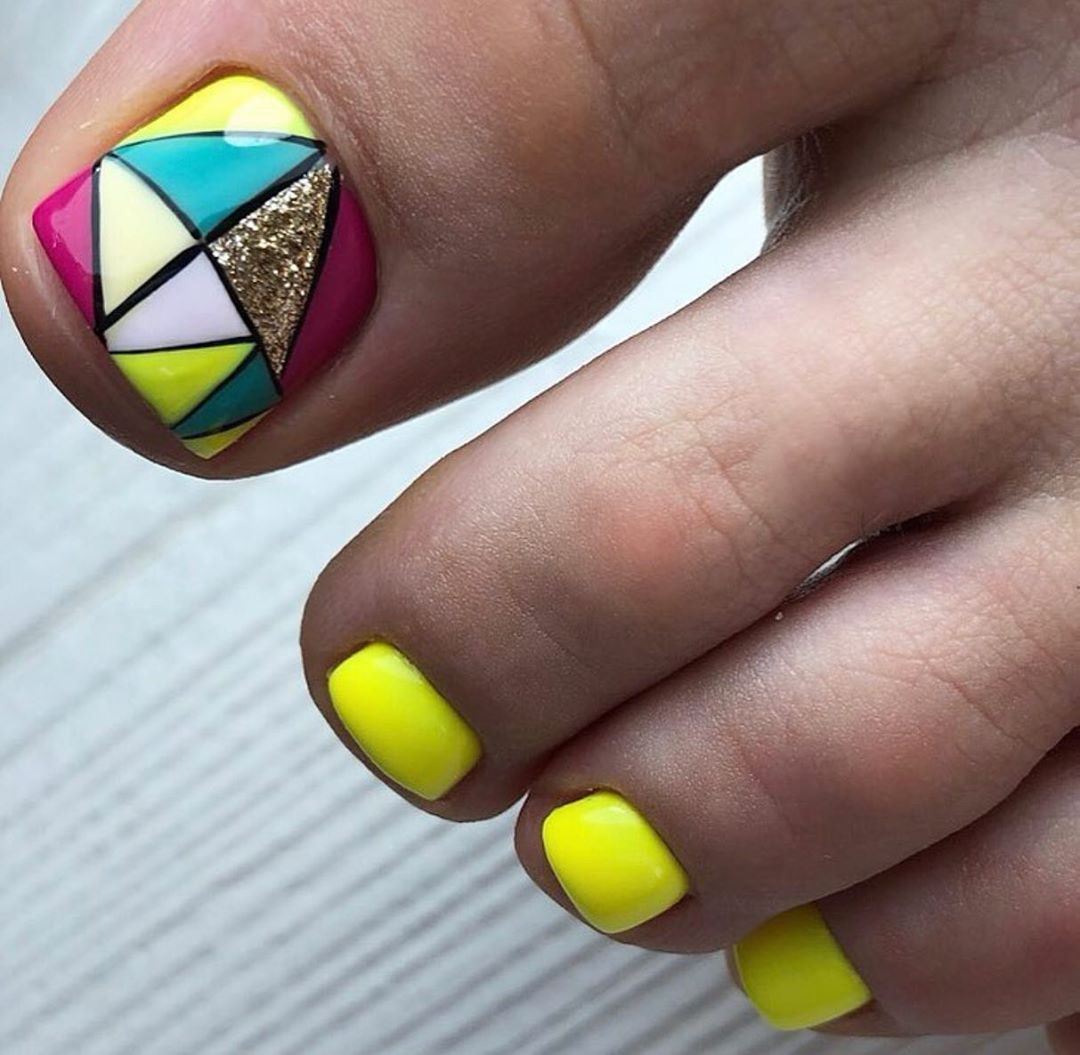 Снова мастера предлагают вспомнить геометрический рисунок. Точки и линии разной толщины, формы и многое другое в летнем сезоне 2023 буквально на пике популярности. Более того, вы всегда можете разнообразить его скотчем и другим декором на свой вкус. В качестве основного покрытия для маникюра и педикюра хорошо смотрятся не только пастельные тона, но и яркие цвета.
