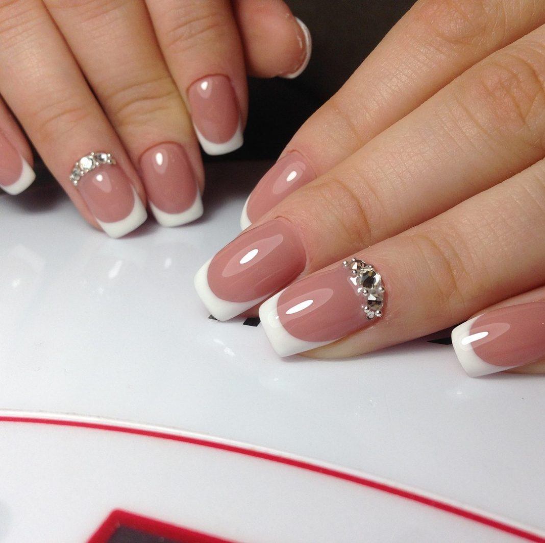 Классические бело-розовые тона по-прежнему в моде. Основную конкуренцию им составляют нейл-арты в белом, черном, бордовом цвете. Все эти цвета и многочисленные их полутона великолепно сочетаются как со стразами, так и с блестками.
