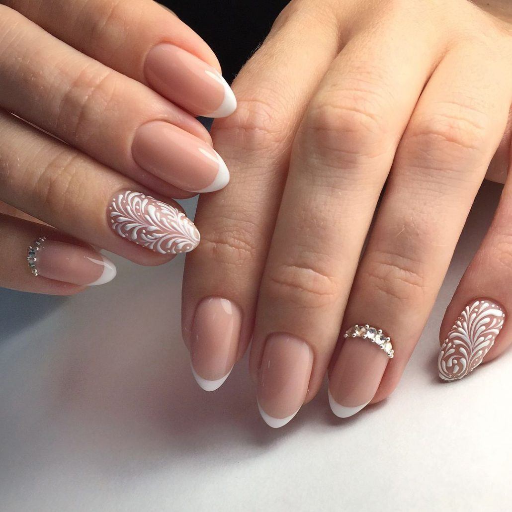 Белый френч принято ассоциировать со свадебным маникюром. Действительно, изящные белоснежные нейл-арты идеально гармонируют со свадебным платьем. Однако, белый маникюр может использоваться и в повседневных образах. Основное отличие между этими направлениями заключается в использовании декора. Если в свадебном маникюре присутствуют стразы, лепнина, кружево и множество другого декора, то в повседневных нейл-артах можно обойтись вообще без них.