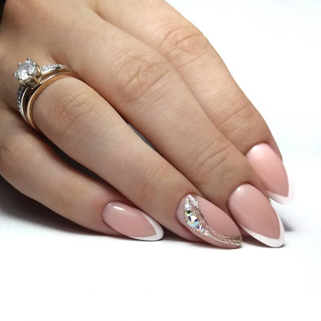 - Классический французский маникюр представляет собой белый кончик и розовое или бежевое основание ногтевой пластины.