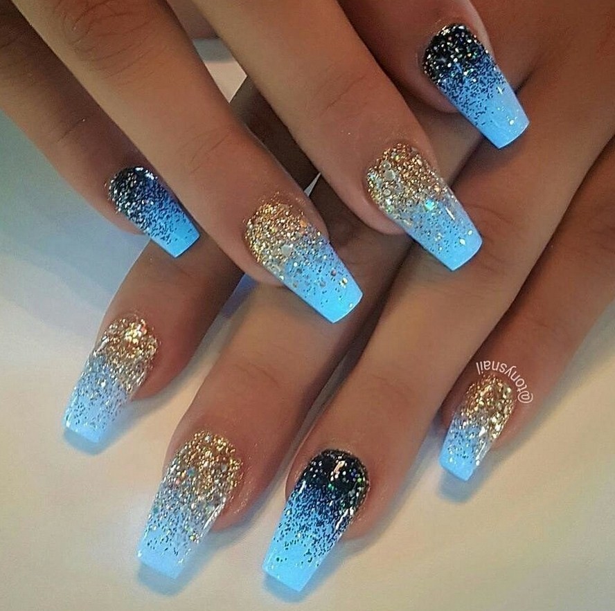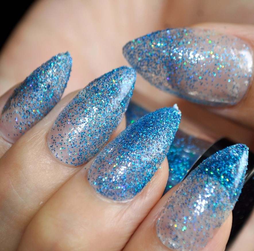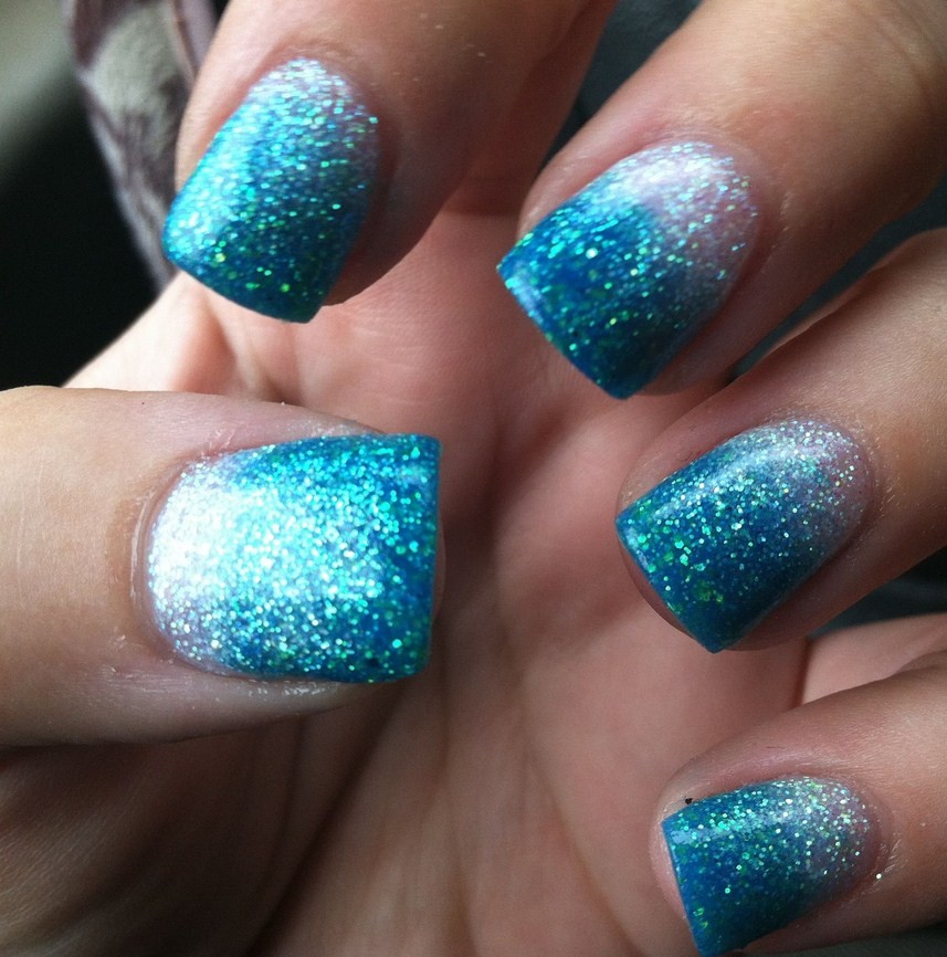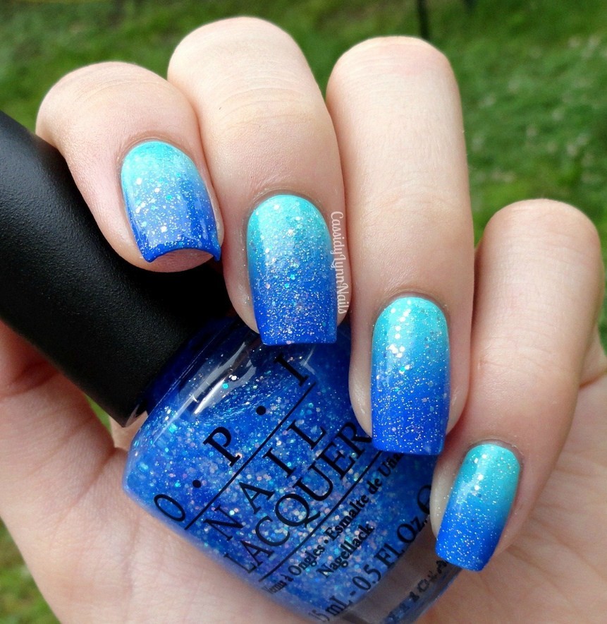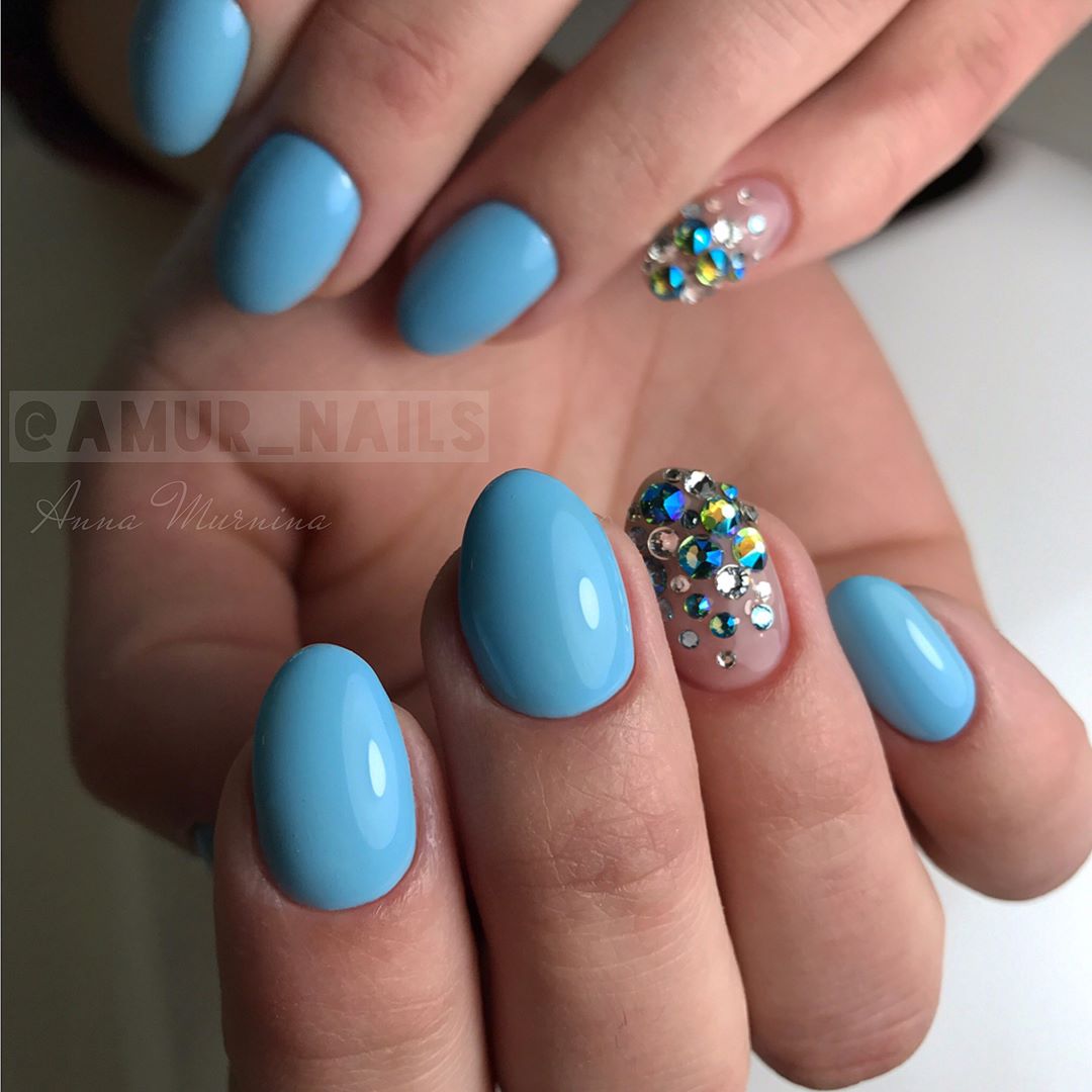 Нежные, но сочные краски как нельзя кстати придутся для оформления ноготков летом и весной. Сейчас в моде все оттенки голубого, которые применяются в техниках омбре, френч. Блеск глиттера только придаст им игривости.