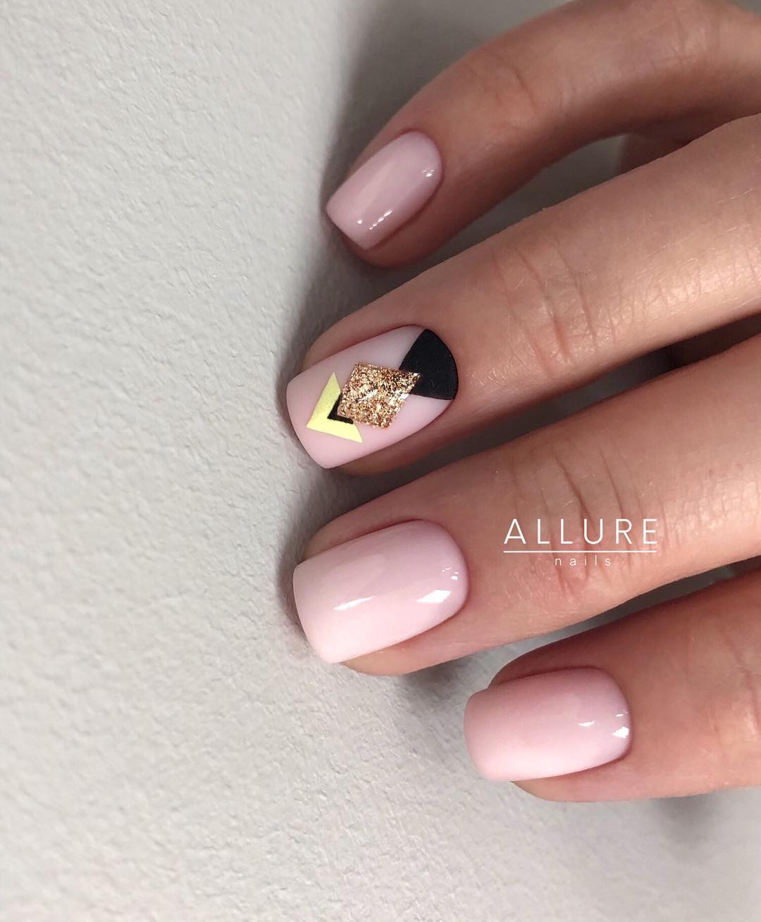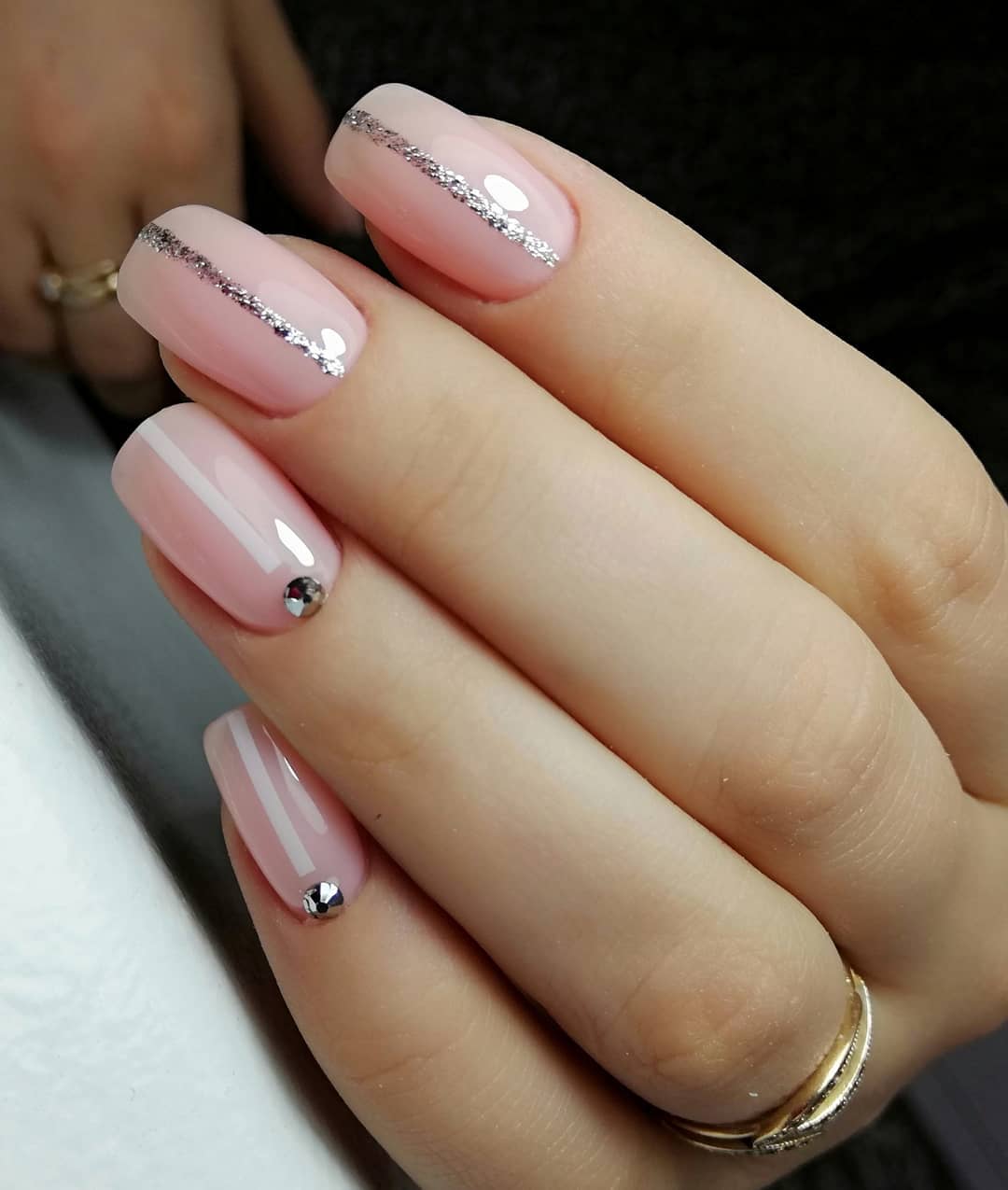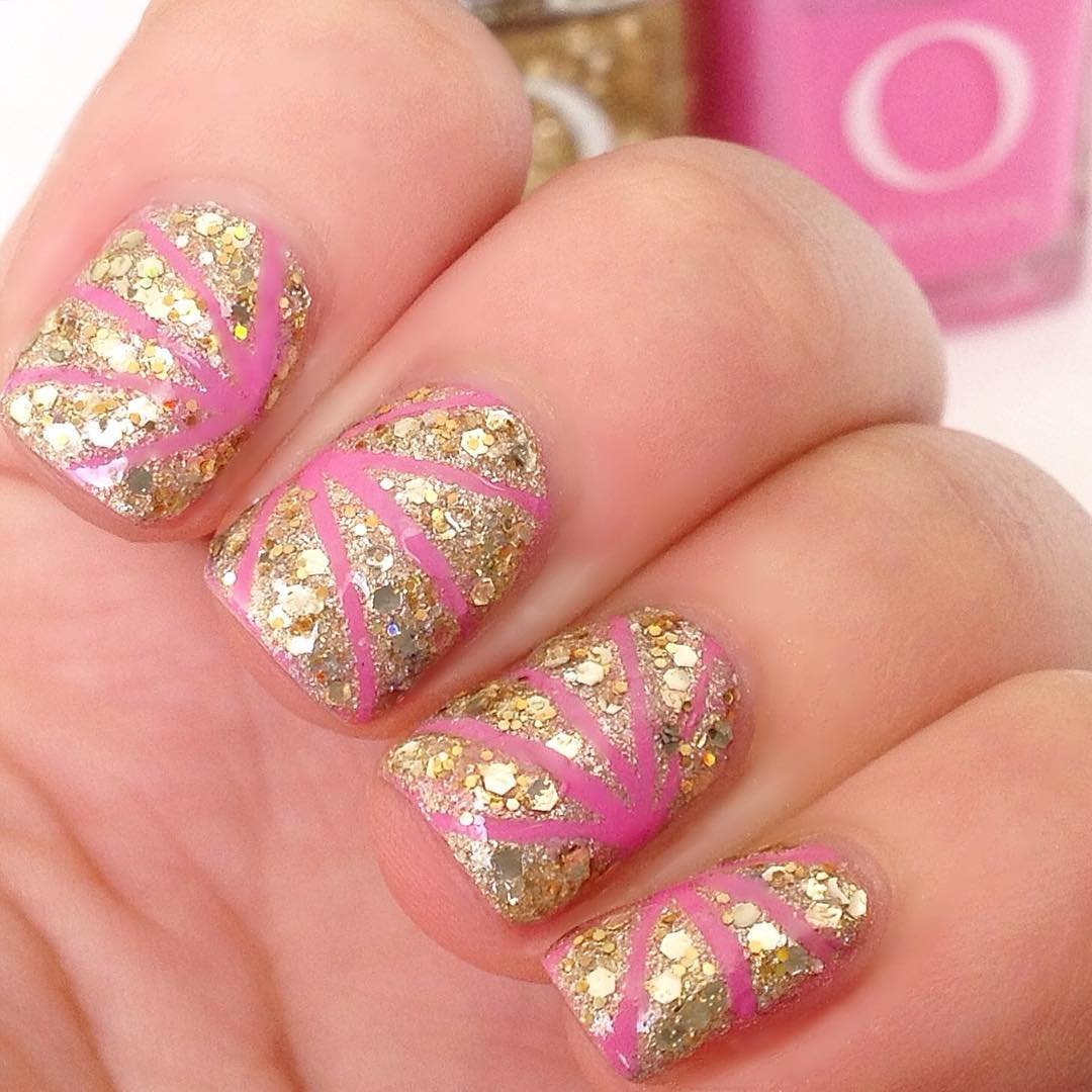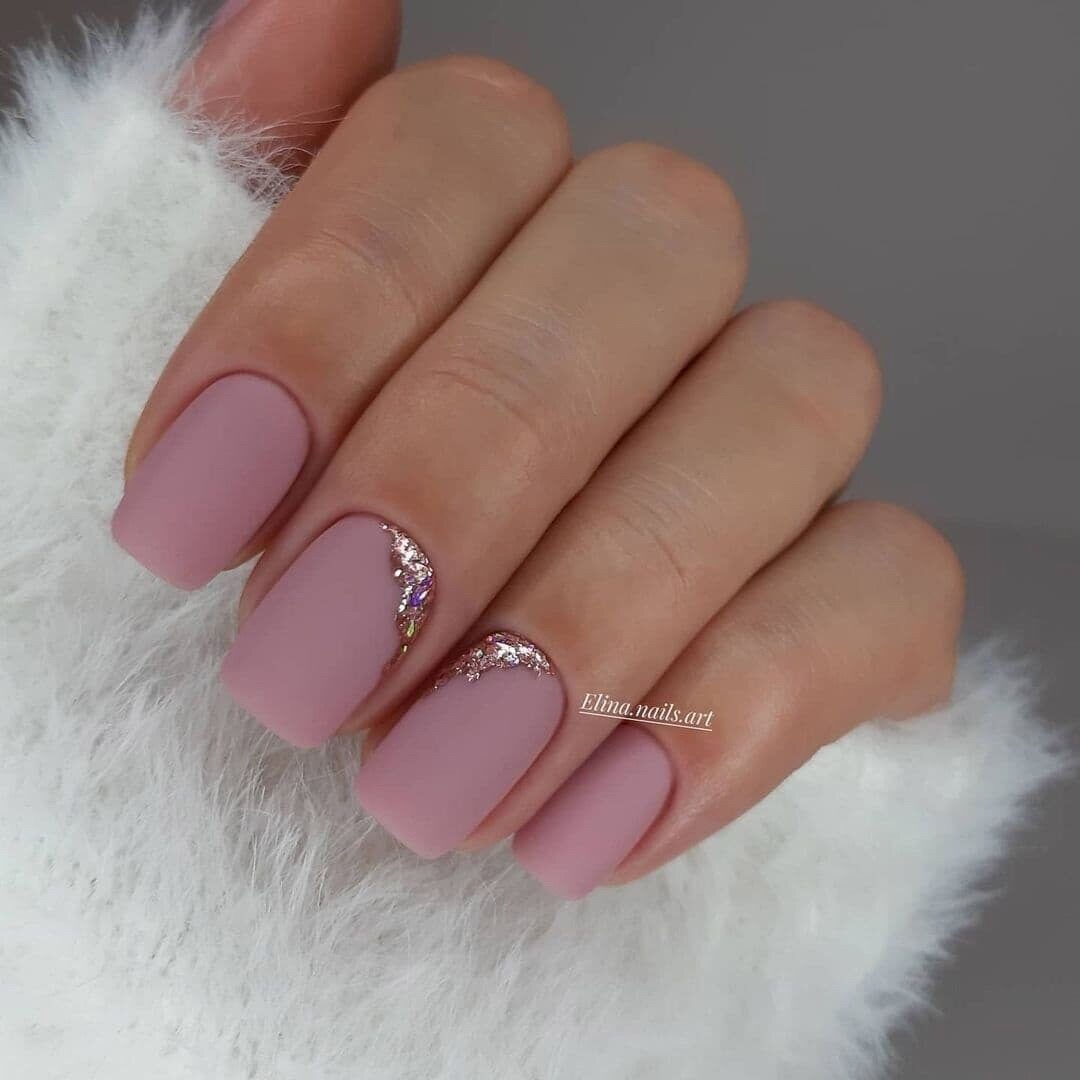Розовый лак лучше всего сочетается с глиттером серебристого и золотистого оттенков, причём такой дизайн отлично подойдёт для любого праздника.