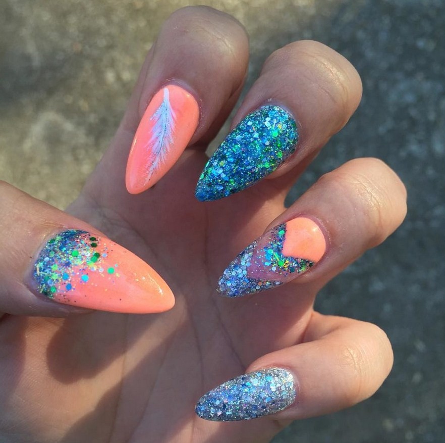 Использование блёсток в маникюре предоставляет девушкам и женщинам прекрасную возможность создать потрясающий маникюр на любой случай без утяжеления ногтей. Это идеальный выбор декора для тех девушек или женщин, которые желают одновременно «сиять» и при этом оставаться милой и женственной.