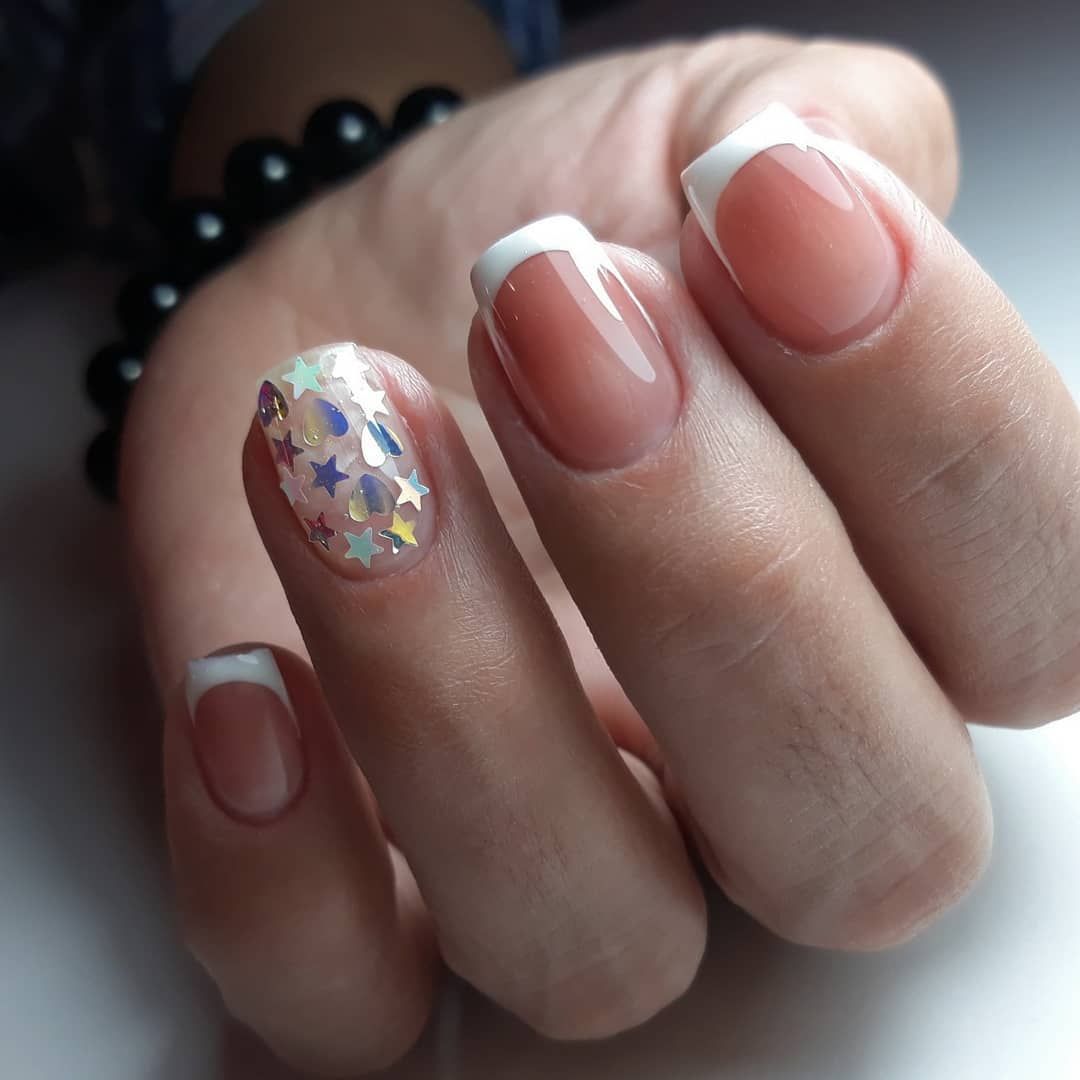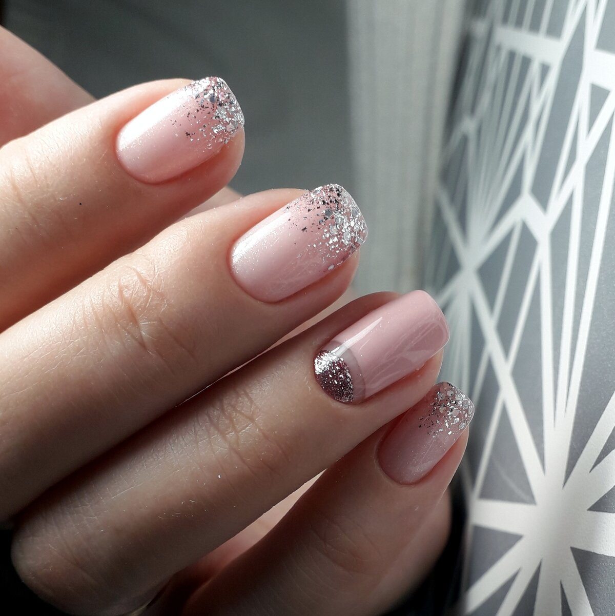 #2 Нежный френч с глиттером: оригинальная новинка сезона