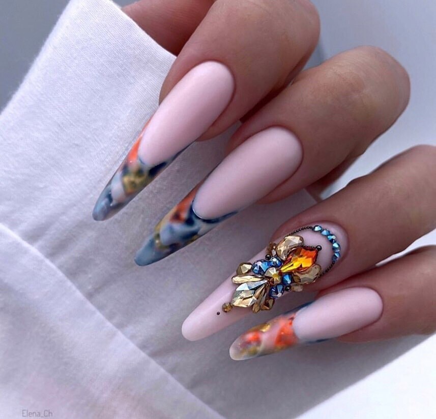 Однако использовать их нужно с умом — для коротких ногтевых пластин подойдут больше натуральные оттенки, тогда как в случае длинных можно использовать холодные и контрастные цвета.