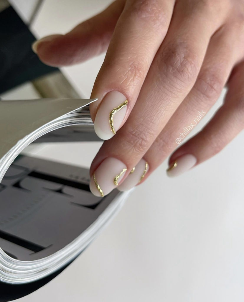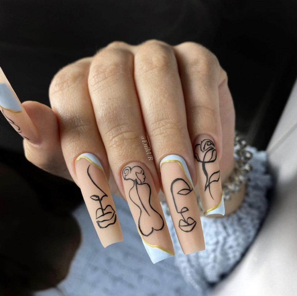 И снова нюд! Нюдовый маникюр с черными деталями — еще одна классическая идея, которая появится в трендах с конца лета и будет в моде до конца 2024 года. Экспериментируйте с нюдовым гелем, добавляя тонкие черные полосы, абстрактные узоры или геометрические элементы.