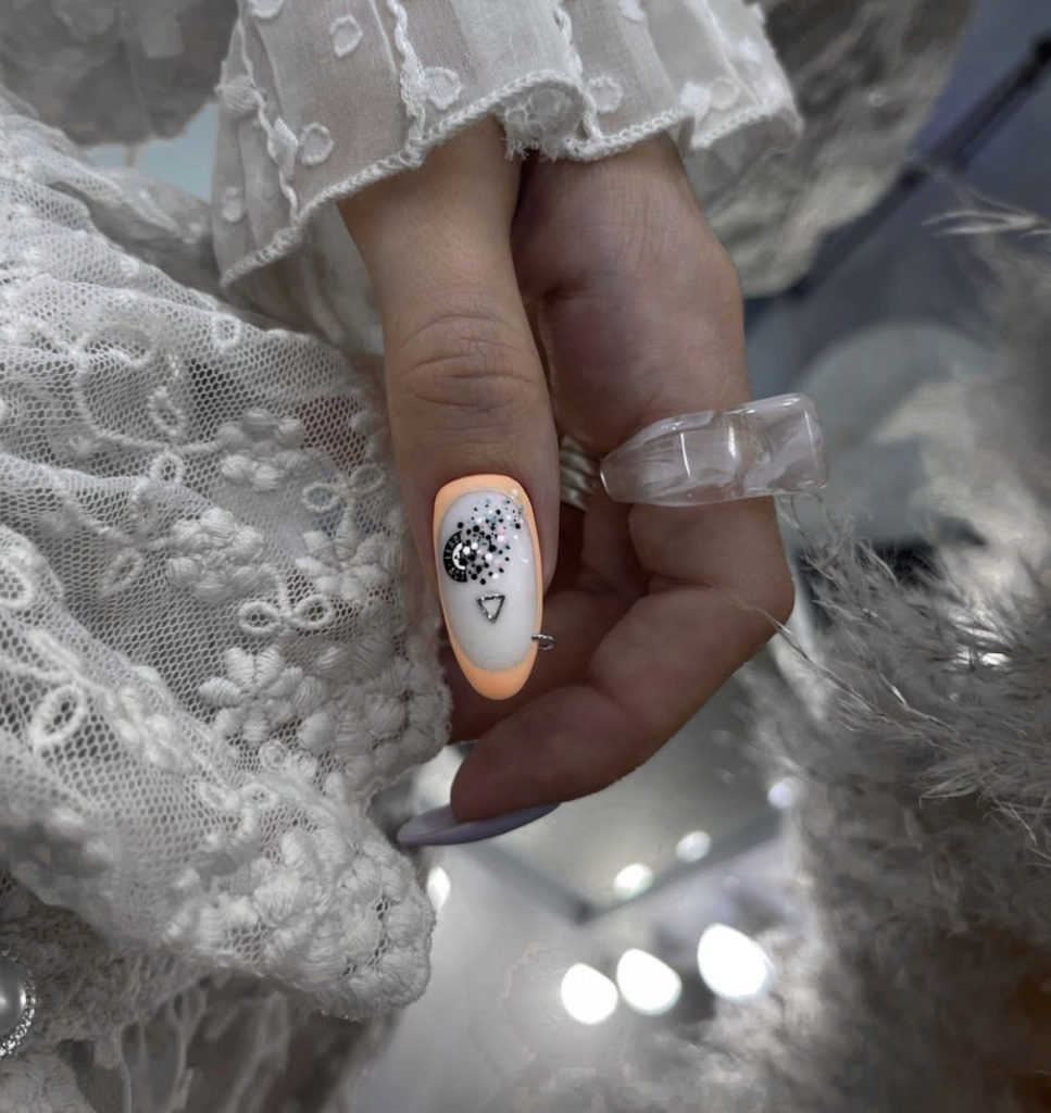 Просто нужно подобрать тот ногтевой дизайн, который нравится, чтобы там были: рисунок, наклейки, стразы или сделать модный маникюр в персиковых тонах в своей оригинальной вариации.