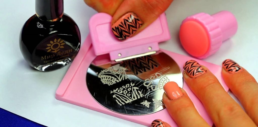 Еще одно решение быстрого декорирования ногтя является стемпинг. Другими словами, техника штампов на ногти. При помощи небольших штампиков вы сможете быстро нанести рисунок на ноготь и зафиксировать его финишным покрытием.