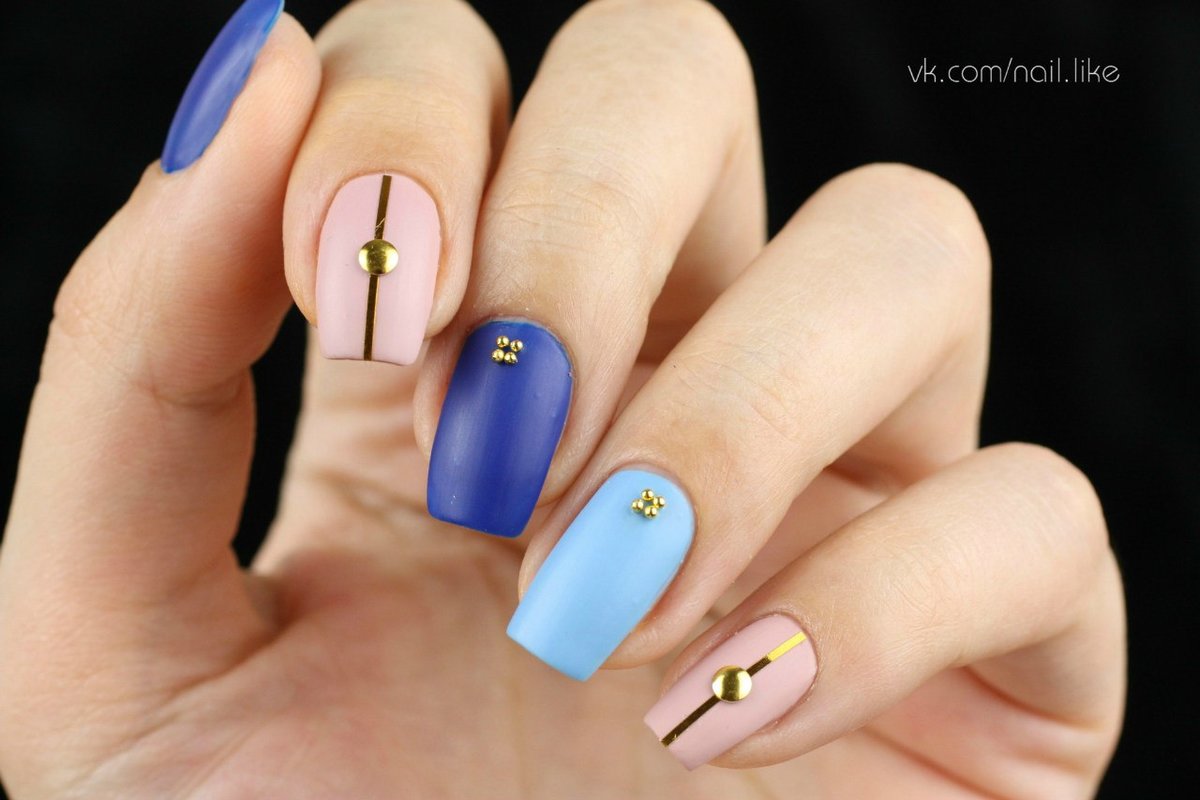 11. Сочетание синего и голубого цветов – создаст эффект небесной глади на ваших ногтях.
