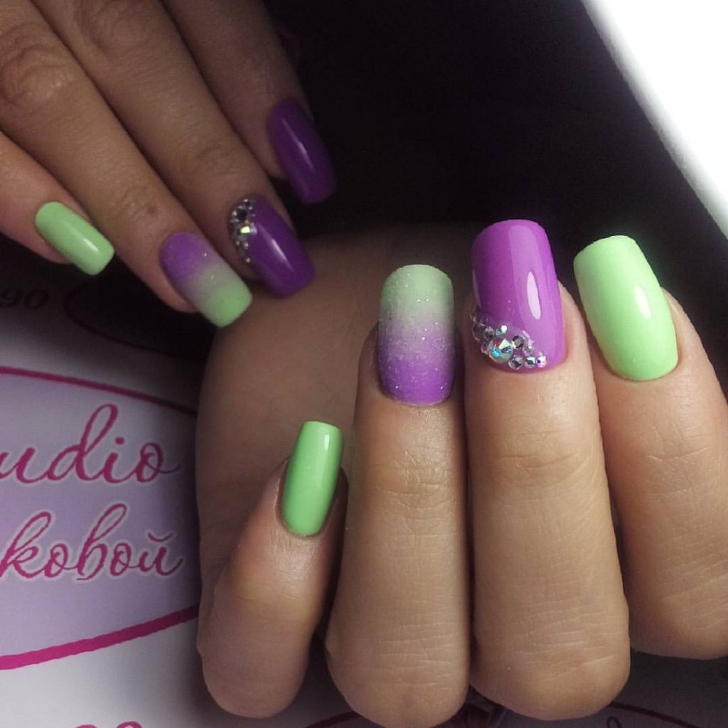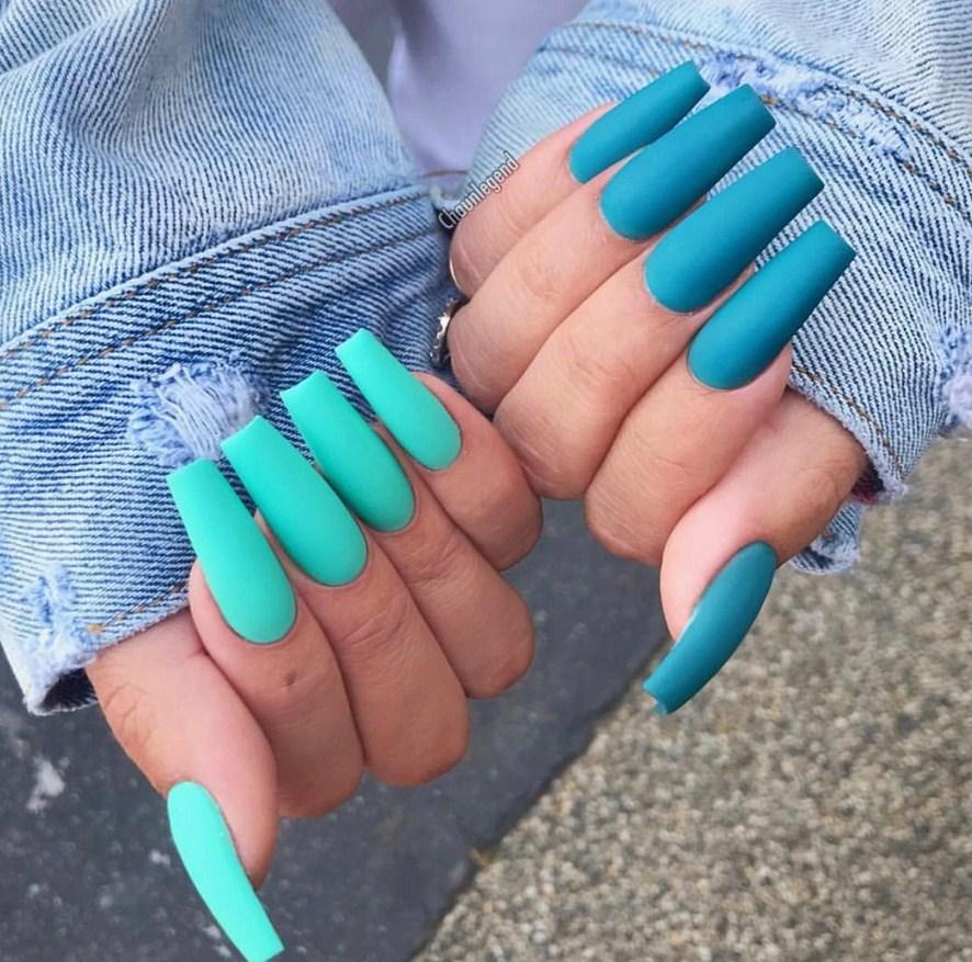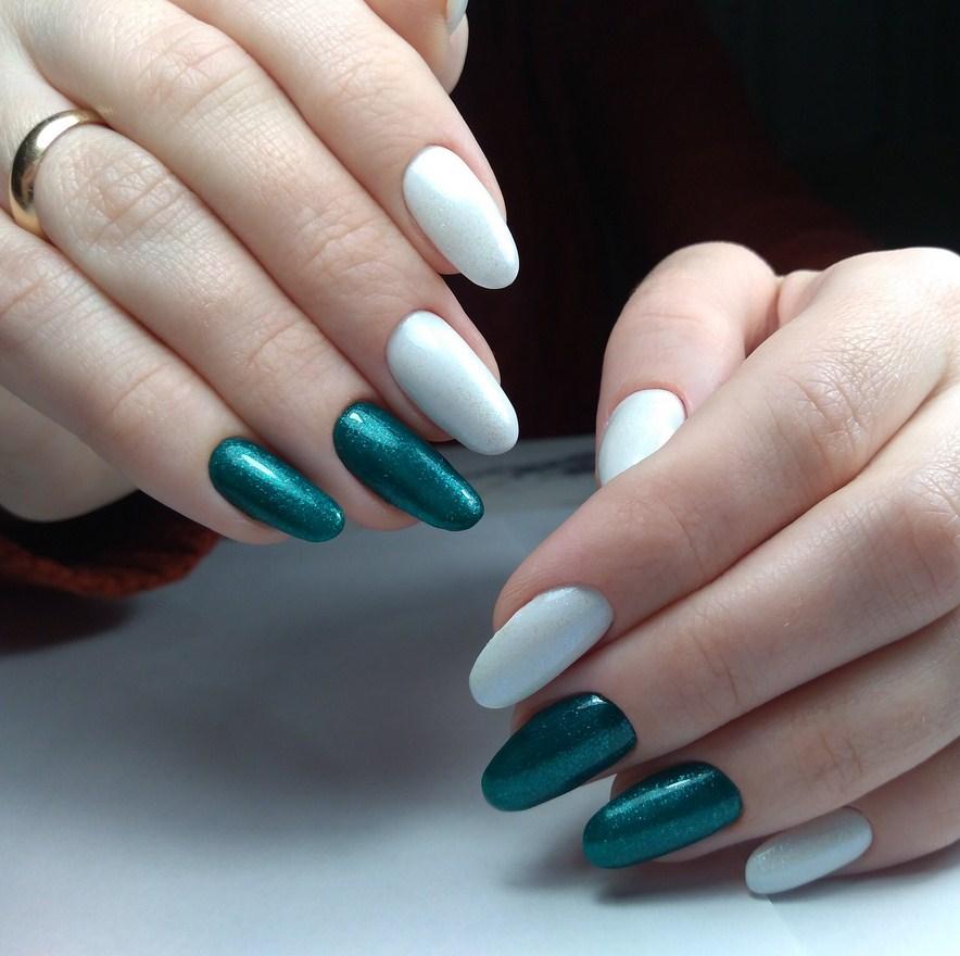 3. Сочетание зеленого и голубого цветов – создаст эффект морской волны на ваших ногтях.