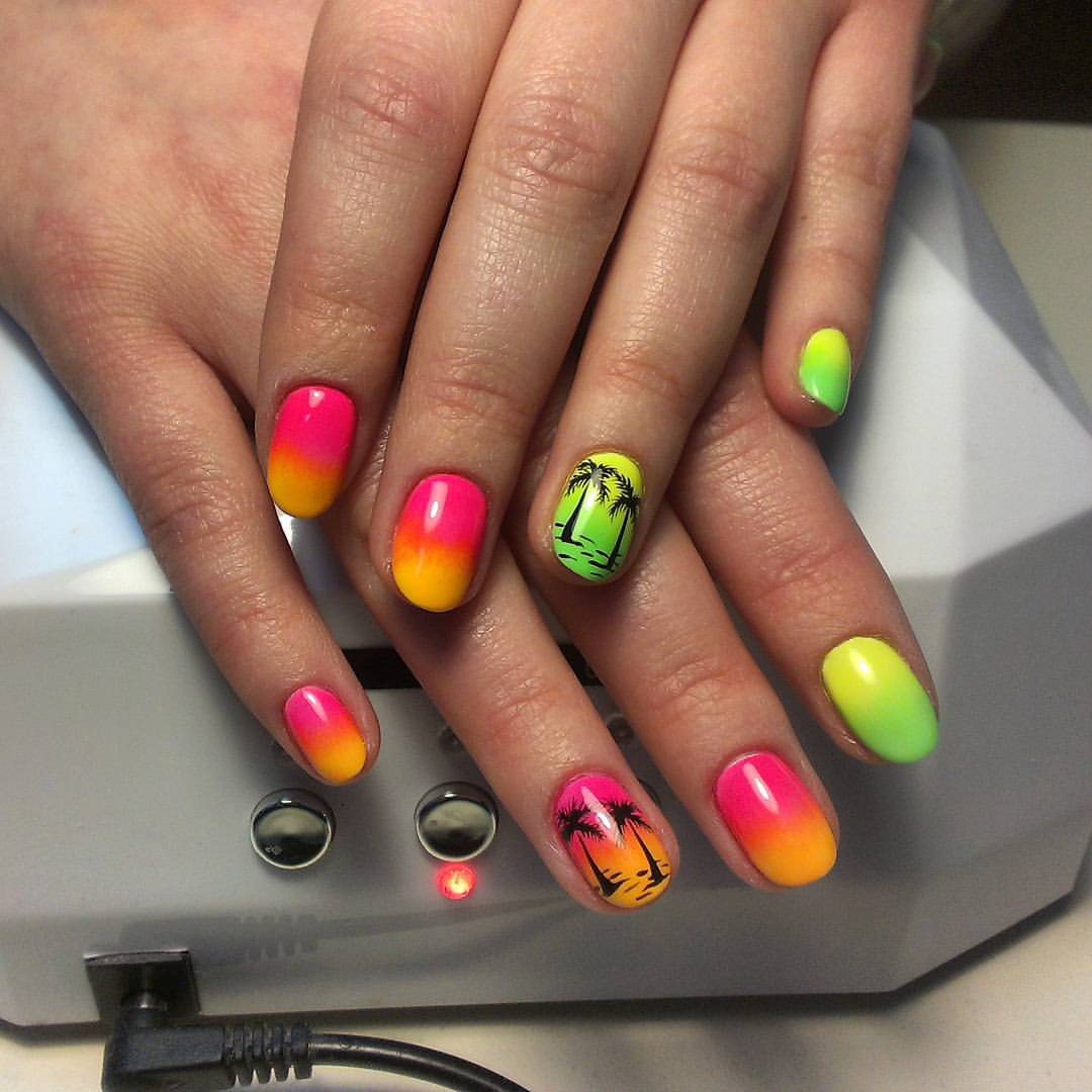Градиент от желтого к оранжевому – солнечный и яркий маникюр для летнего настроения.
