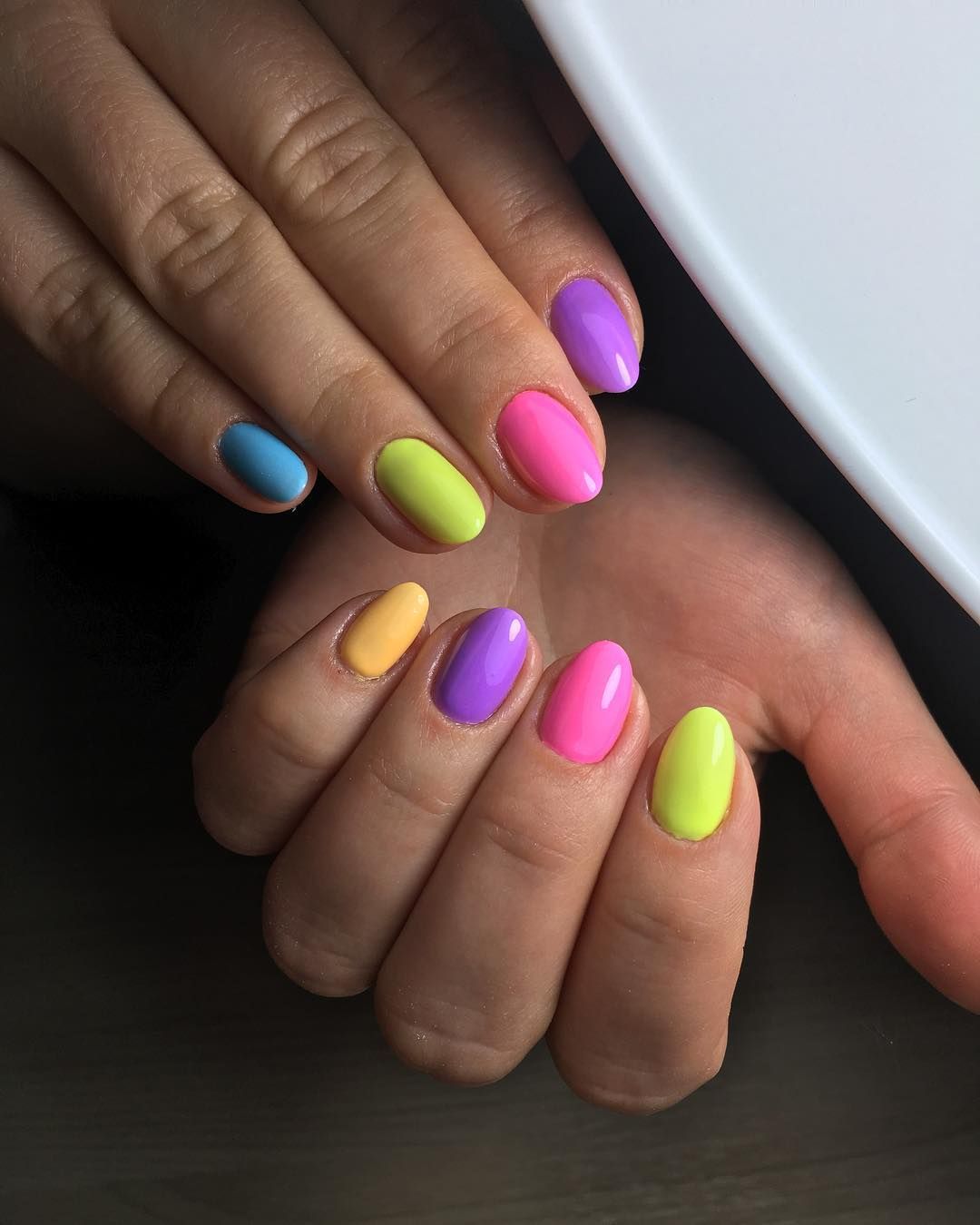 Разноцветный маникюр – универсальное решение для любого образа, стиля и возраста. Кроме того ноготки разных оттенков сегодня на пике популярности. С разноцветным маникюром вы всегда будете выглядеть стильно и привлекательно.