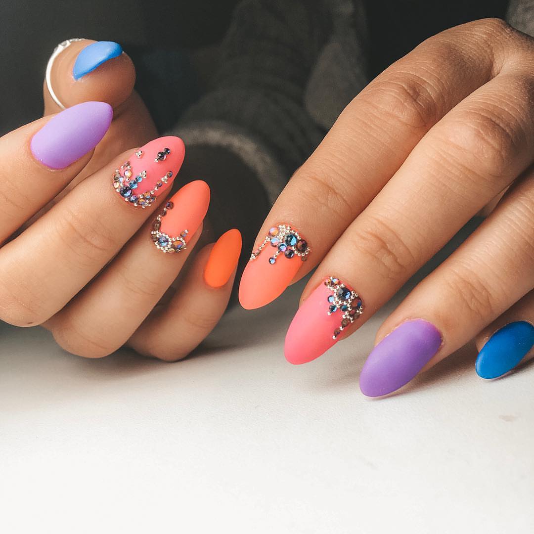Ну и куда же без ярких красок. Если в вашей жизни не хватает ярких эмоций, драйва, то маникюр в потрясающих ярких оттенках — это точно ваш выбор!