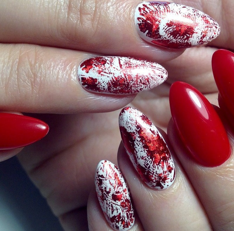 Что же касается дизайна красного маникюра фольгой, он по-прежнему останется в топовом списке, поскольку позволяет создавать индивидуальный дизайн, который лучшим образом подчеркнет не только статус, но также индивидуальность и нетривиальность своей обладательницы.