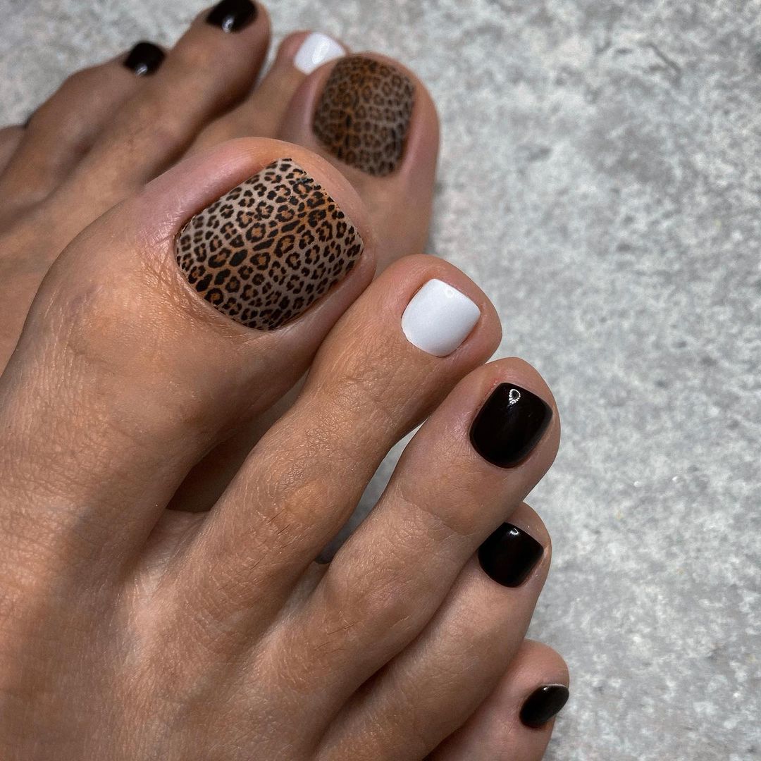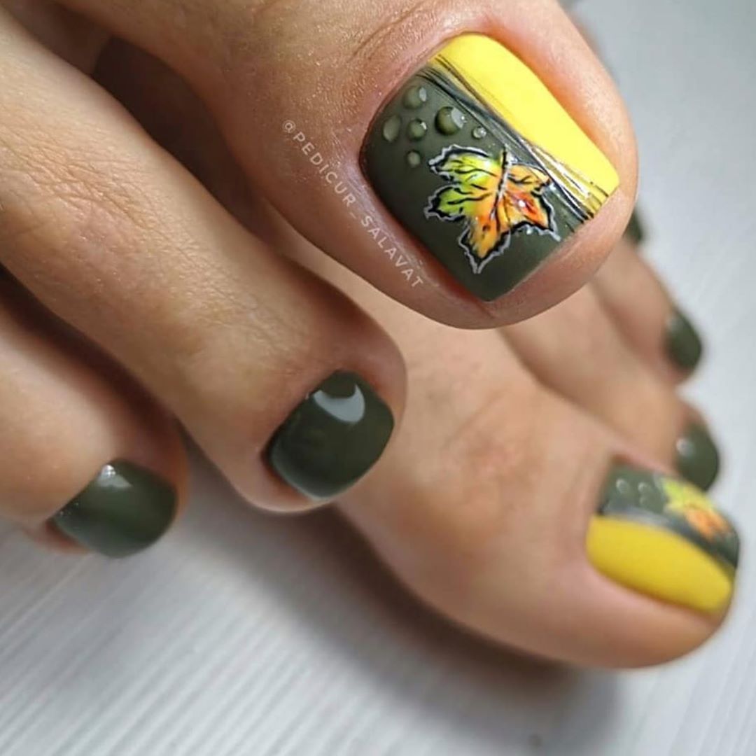 А теперь еще несколько примеров оригинальных и стильных нейл-дизайнов педикюра для осени 2023:
