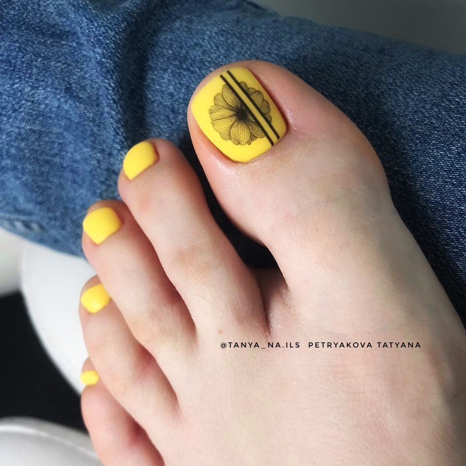 Маникюр и педикюр в одном стиле с рисунком на одном пальце